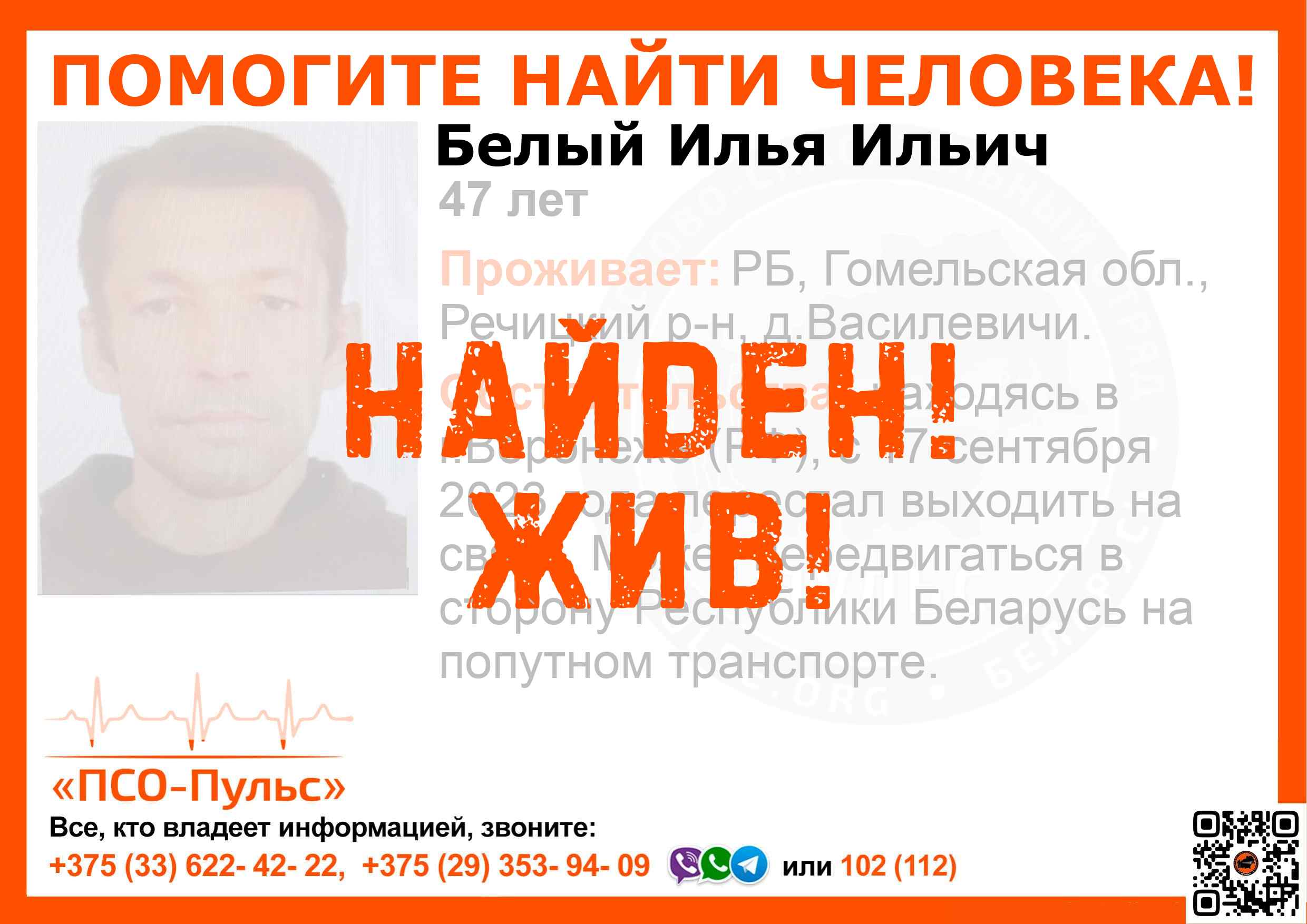 Всех, кто владеет информацией, просим сообщить: ПСО "ПСО-Пульс" +375(33)622-4222 |