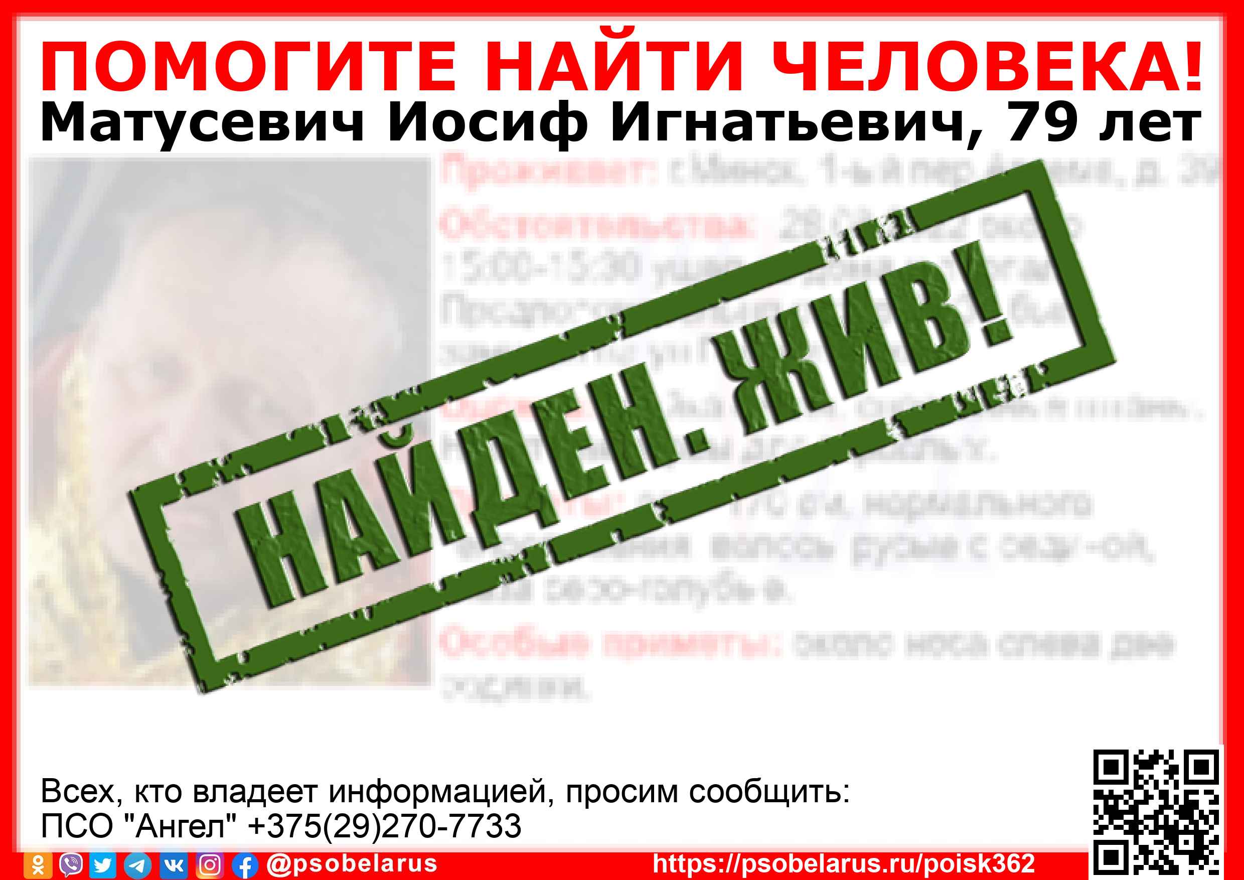 | Всех, кто владеет информацией, просим сообщить: ПСО "Ангел" +375(29)270-7733 |  |