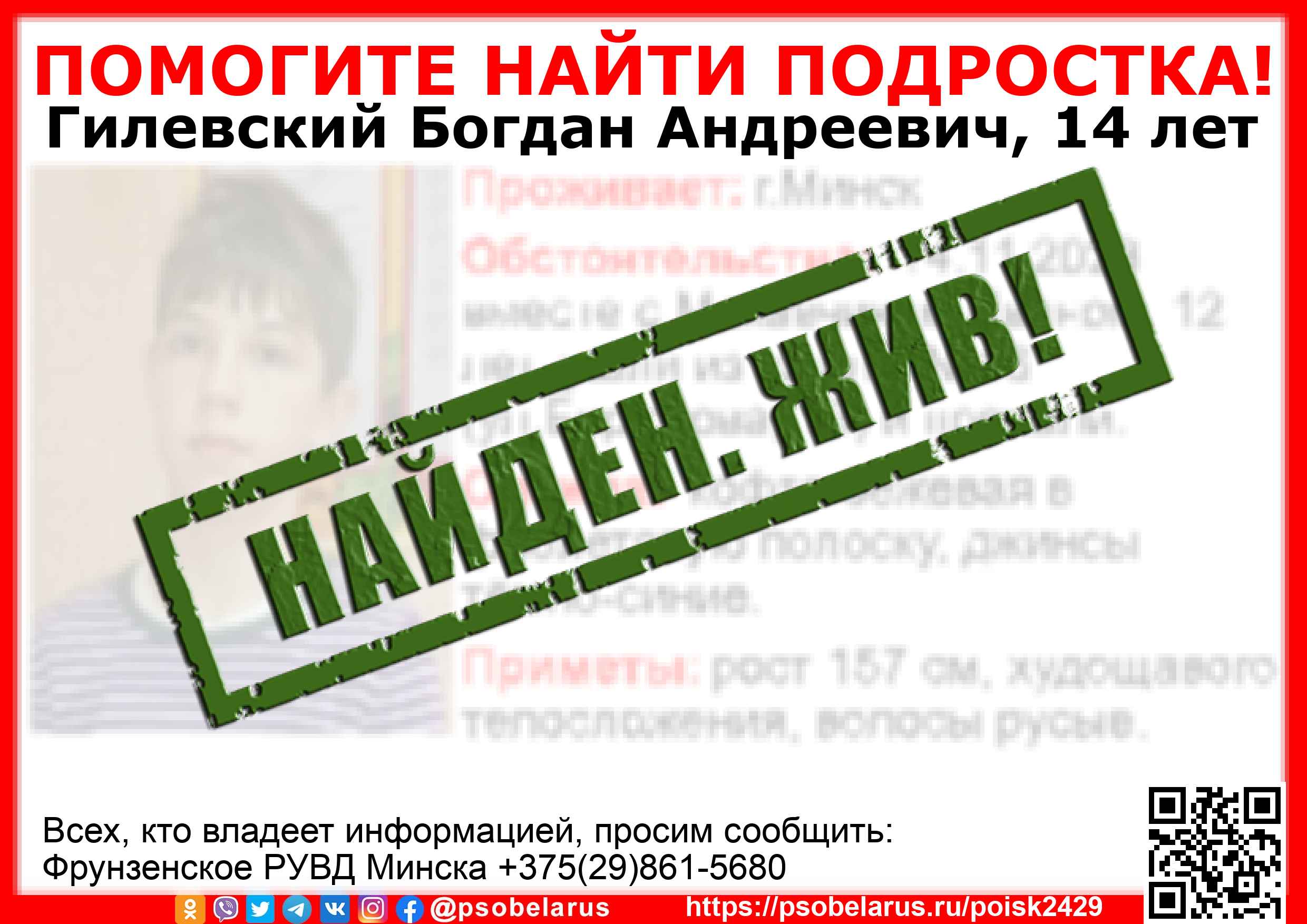 Всех, кто владеет информацией, просим сообщить: Фрунзенское РУВД Минска +375(29)861-5680 |
