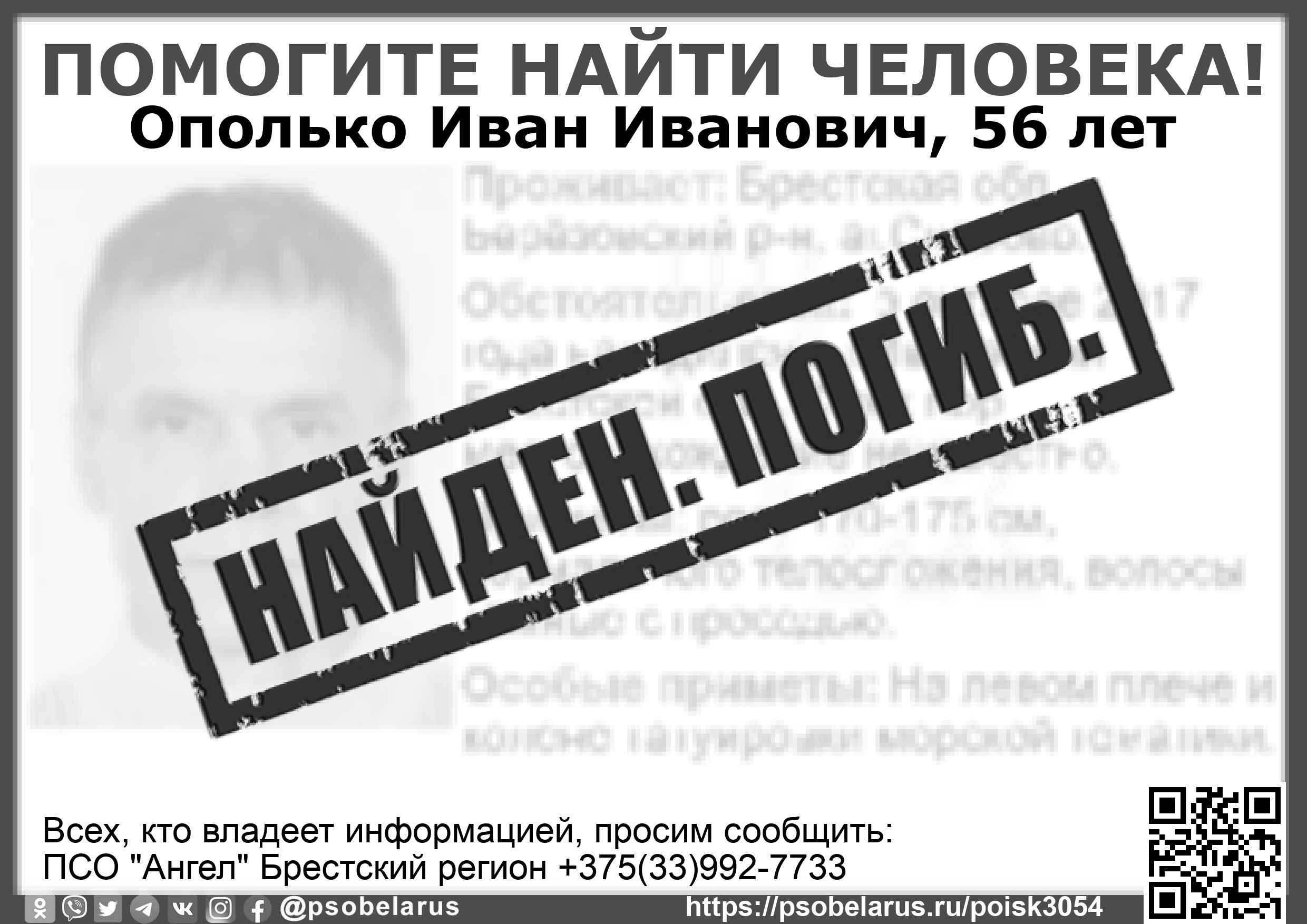 Всех, кто владеет информацией, просим сообщить: ПСО "Ангел" Брестский регион +375(33)992-7733 |