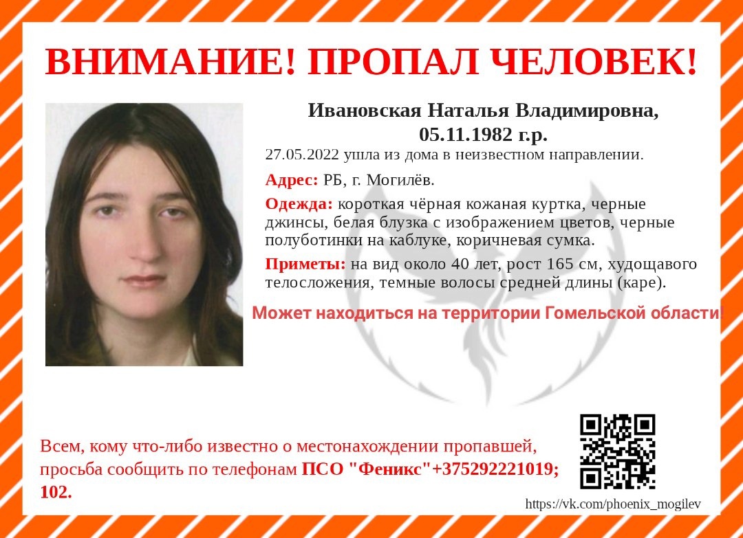 Скачать ориентировкуДля оперативного получения информации о пропавших людях и сборах на поиски можно подписаться на бота оповещения: Телеграм