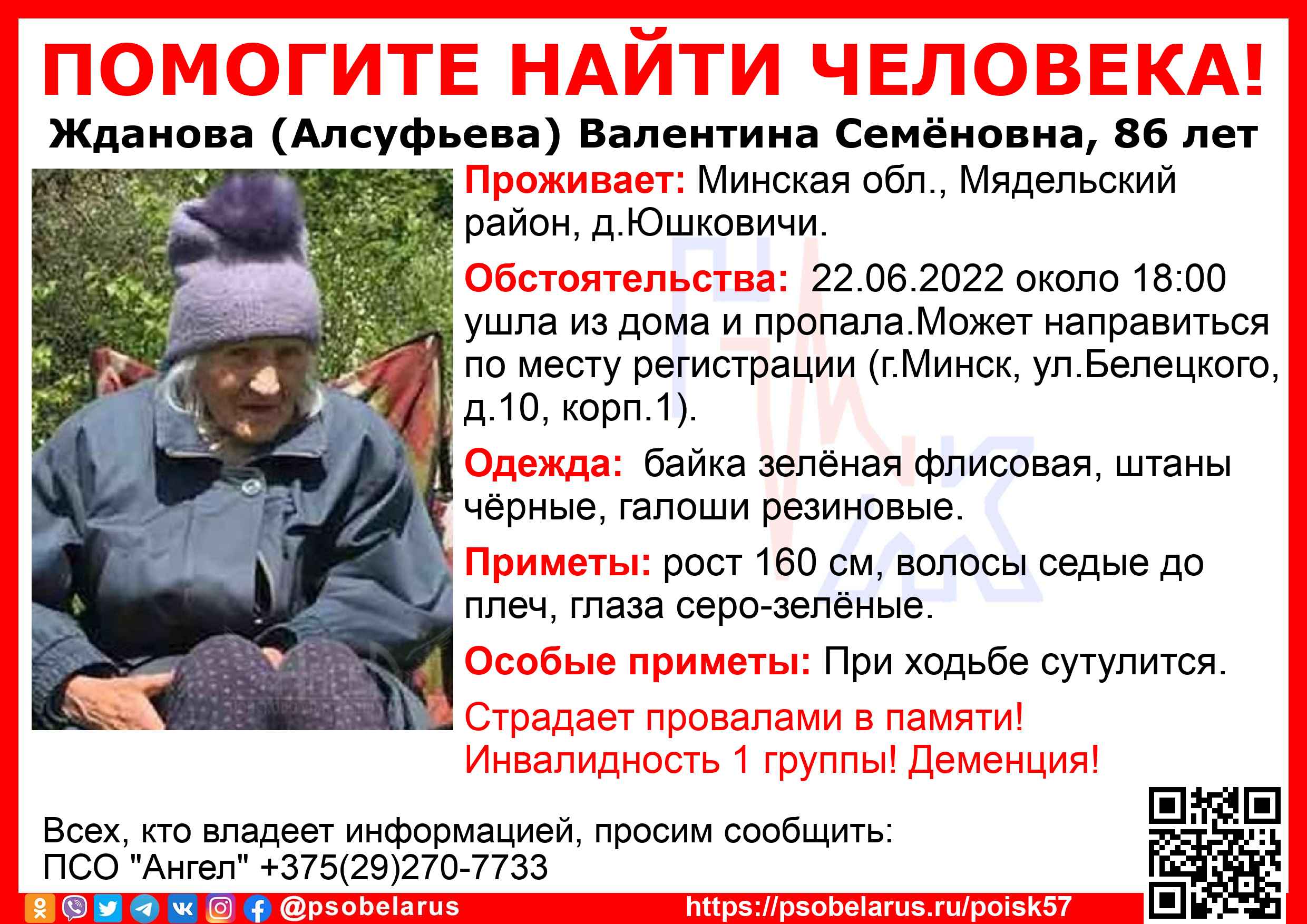 Всех, кто владеет информацией, просим сообщить: ПСО "Ангел" +375(29)270-7733 |