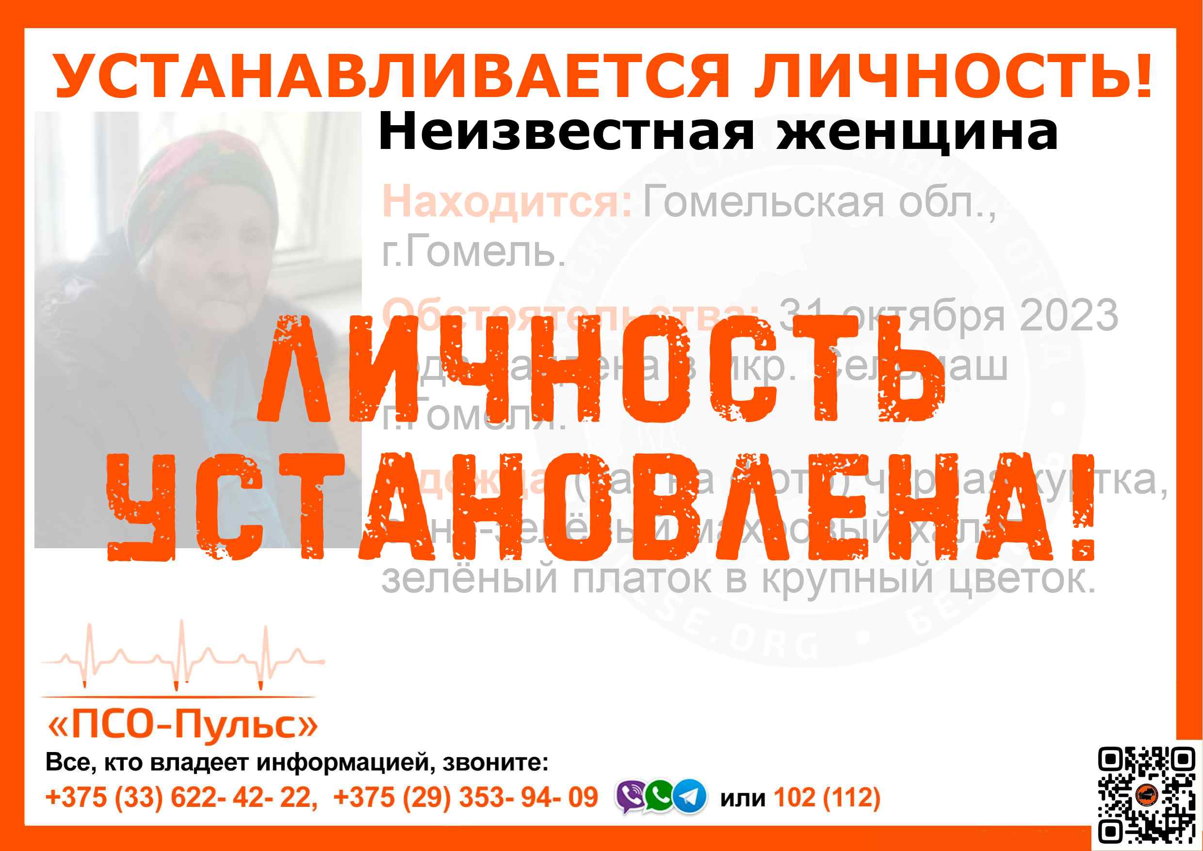 Всех, кто владеет информацией, просим сообщить: ПСО "ПСО-Пульс" +375(33)622-4222 |