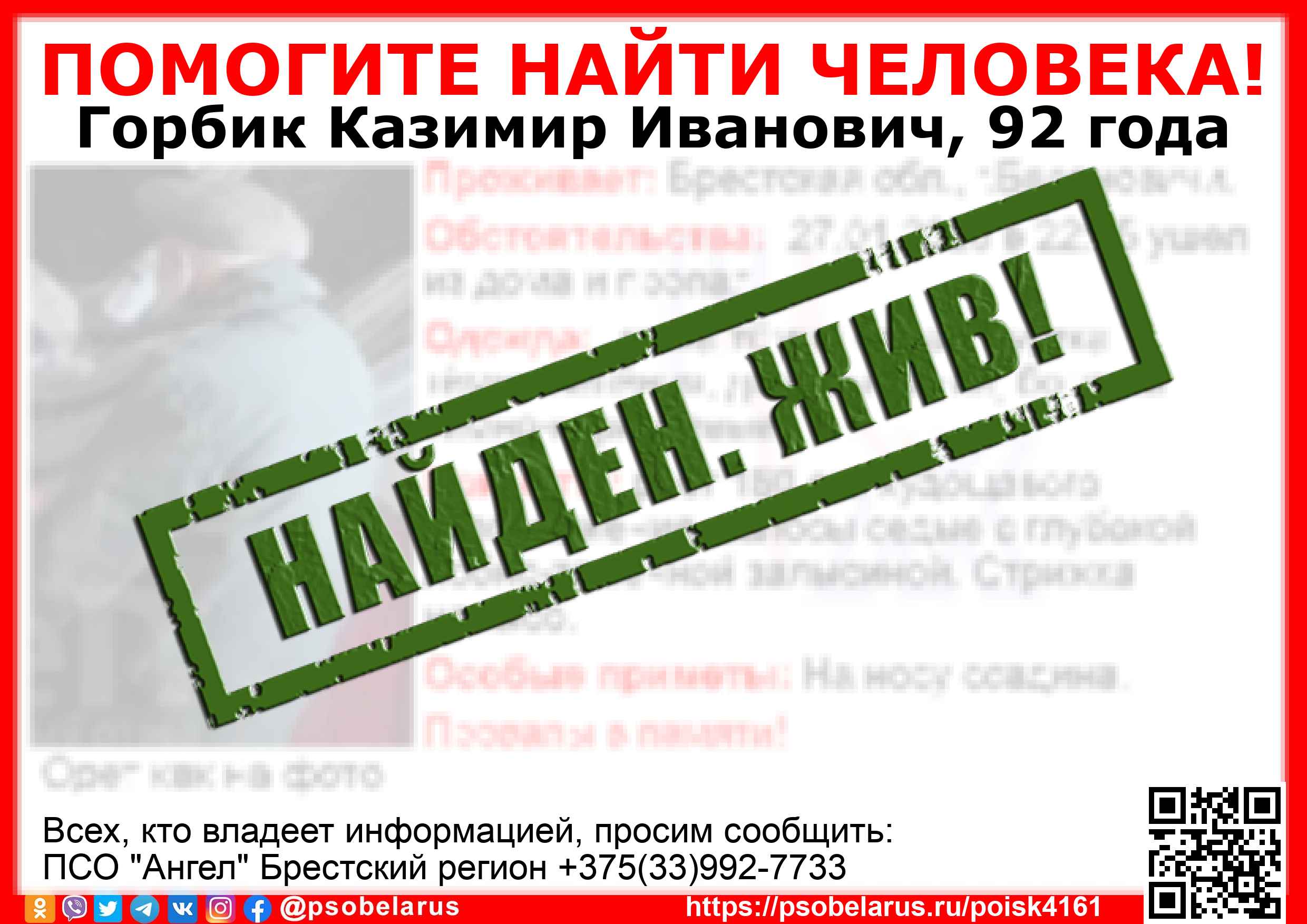 Всех, кто владеет информацией, просим сообщить: ПСО "Ангел" Брестский регион +375(33)992-7733 |