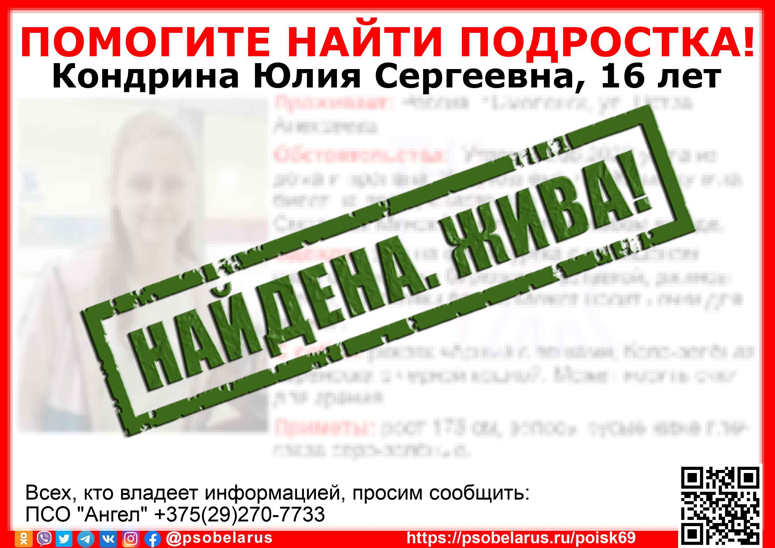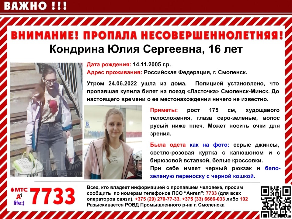 Всех, кто владеет информацией, просим сообщить: ПСО "Ангел" +375(29)270-7733 |