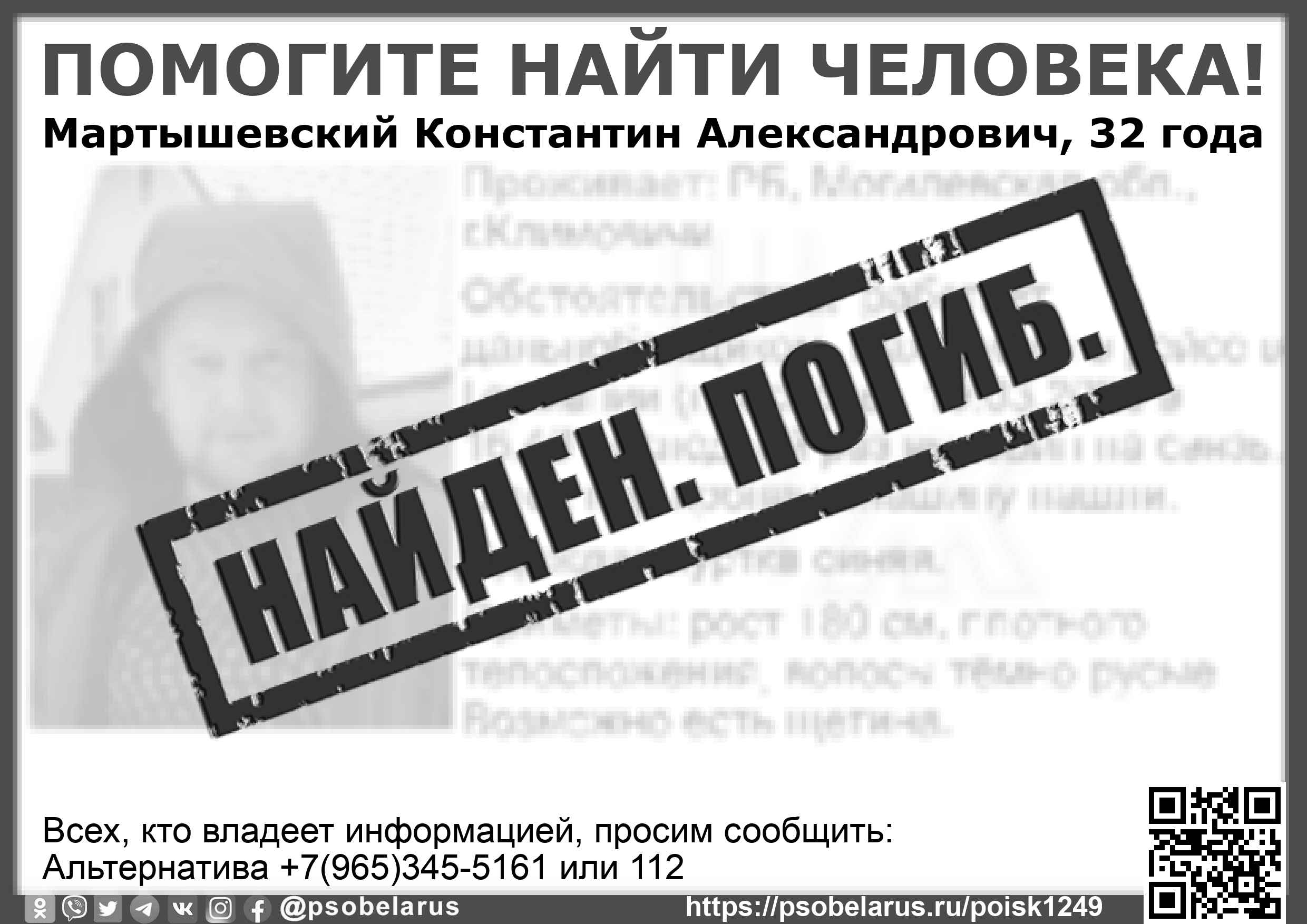 Всех, кто владеет информацией, просим сообщить: Альтернатива +7(965)345-5161 или 112 |