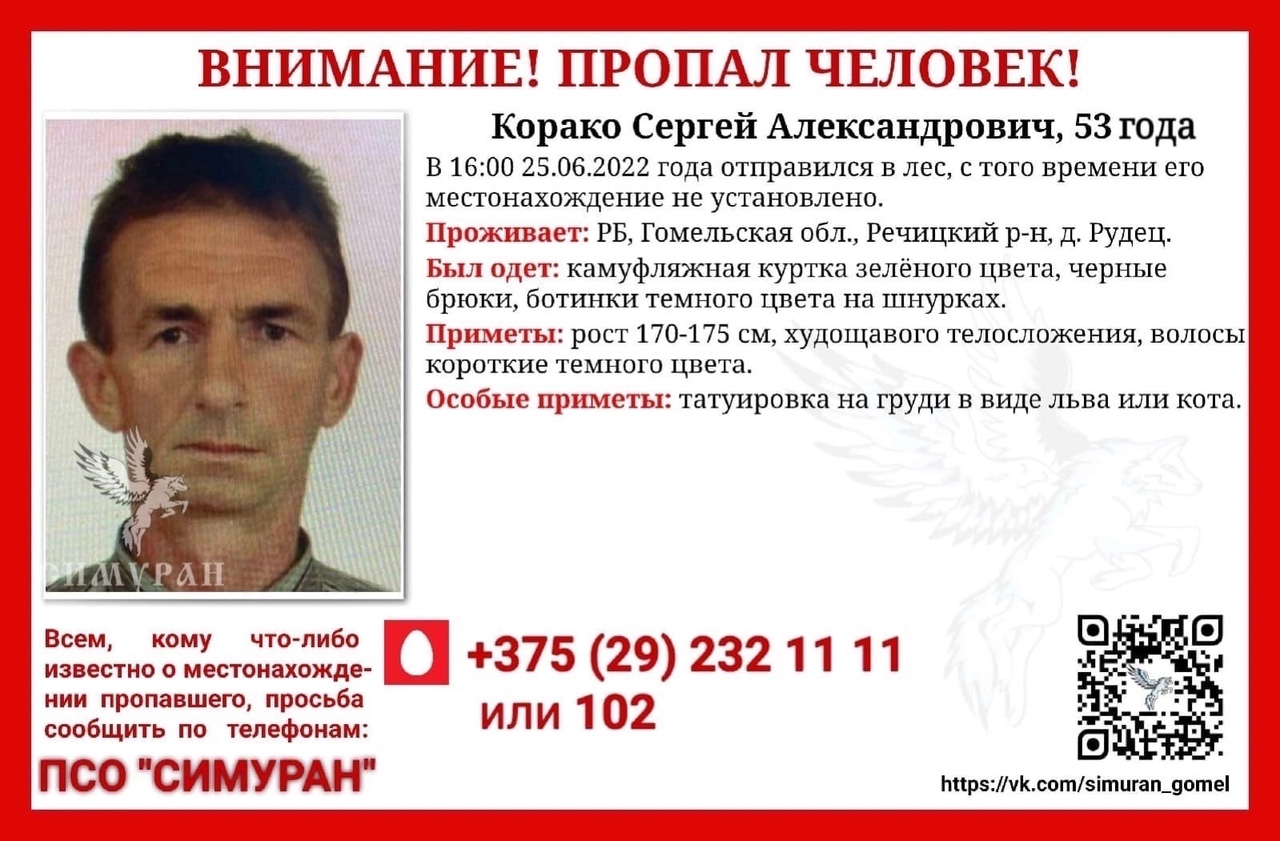 Всех, кто владеет информацией, просим сообщить: ПСО "Симуран" +375(29)232-1111 |
