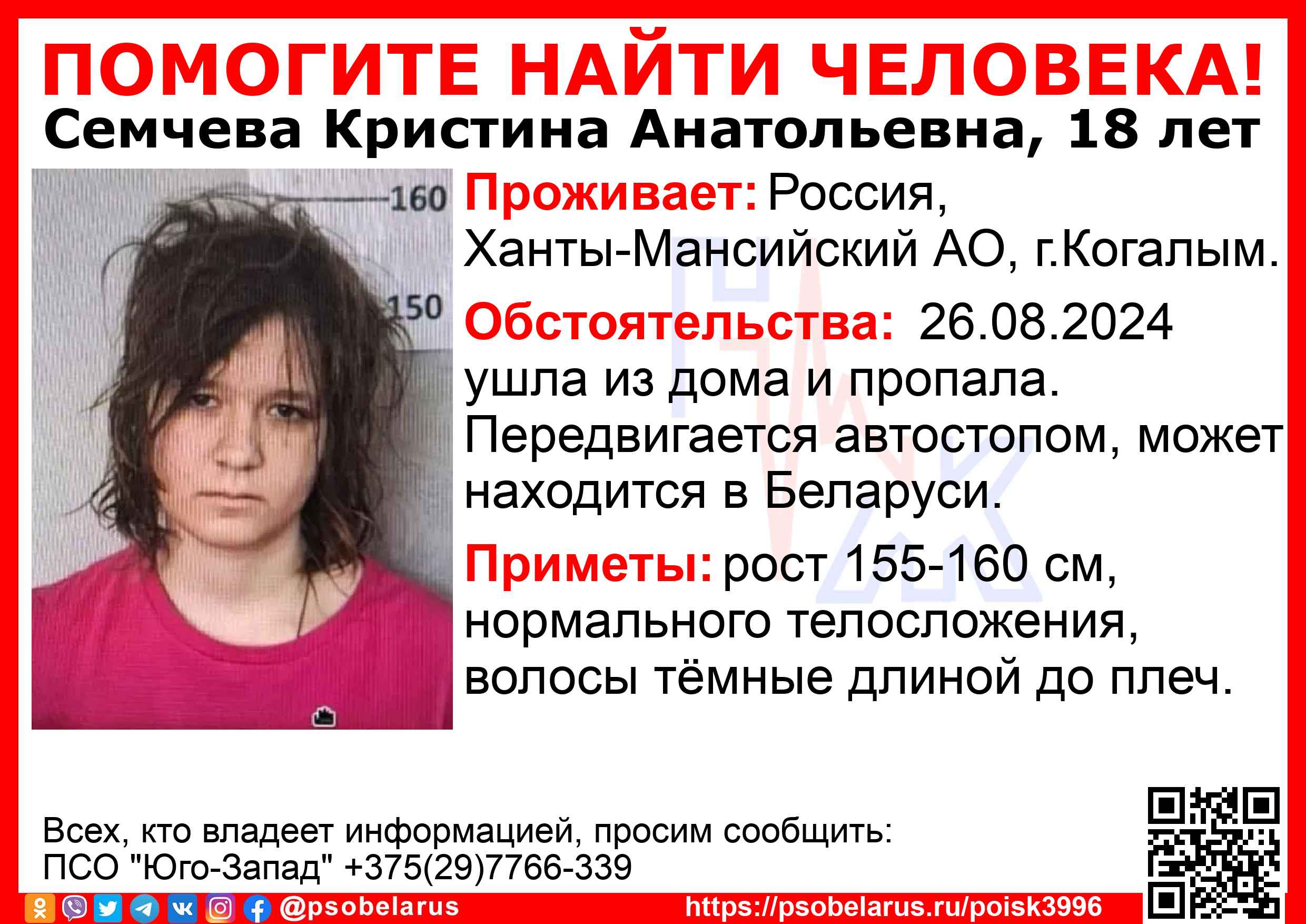 Скачать ориентировкуДля оперативного получения информации о пропавших людях и сборах на поиски можно подписаться на бота оповещения: Телеграм