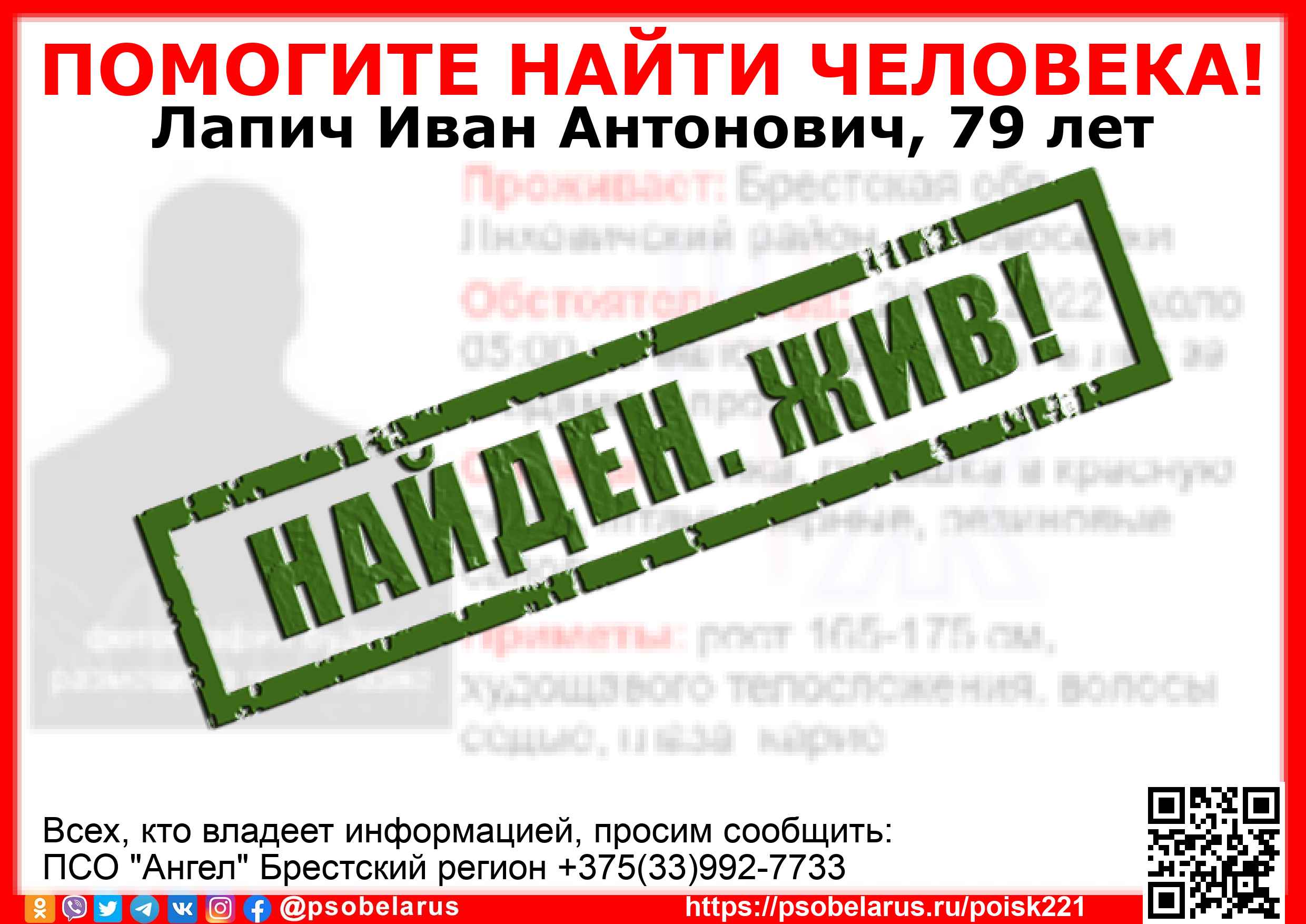 Всех, кто владеет информацией, просим сообщить: ПСО "Ангел" Брестский регион +375(33)992-7733 |
