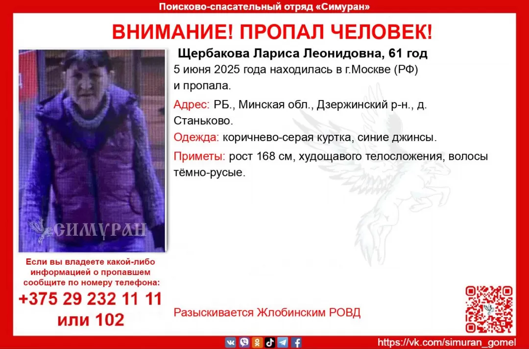 Скачать ориентировкуДля оперативного получения информации о пропавших людях и сборах на поиски можно подписаться на бота оповещения: Телеграм