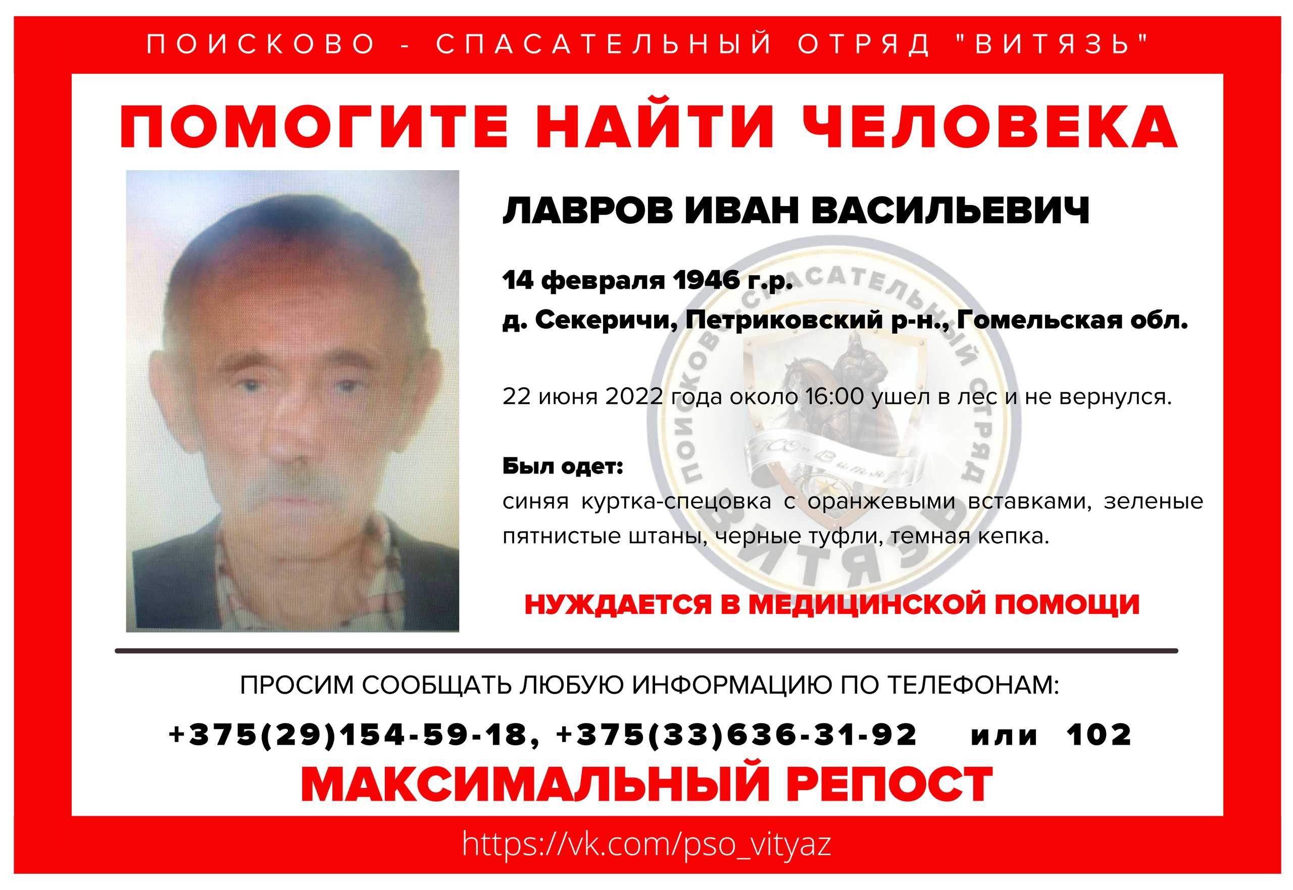 Всех, кто владеет информацией, просим сообщить: ПСО "ВИТЯЗЬ" +375(29)154-59-18 |