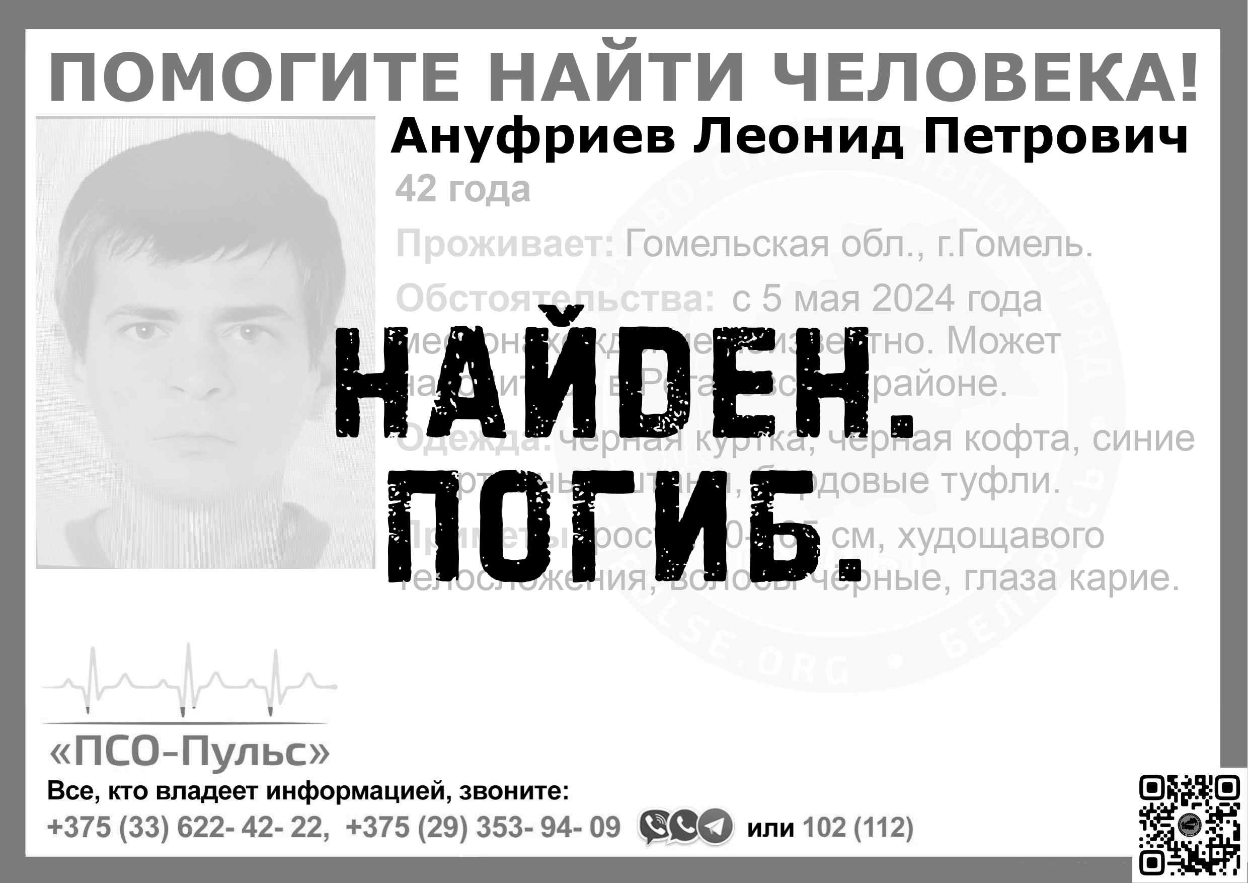 Всех, кто владеет информацией, просим сообщить: ПСО "ПСО-Пульс" +375(33)622-4222 |