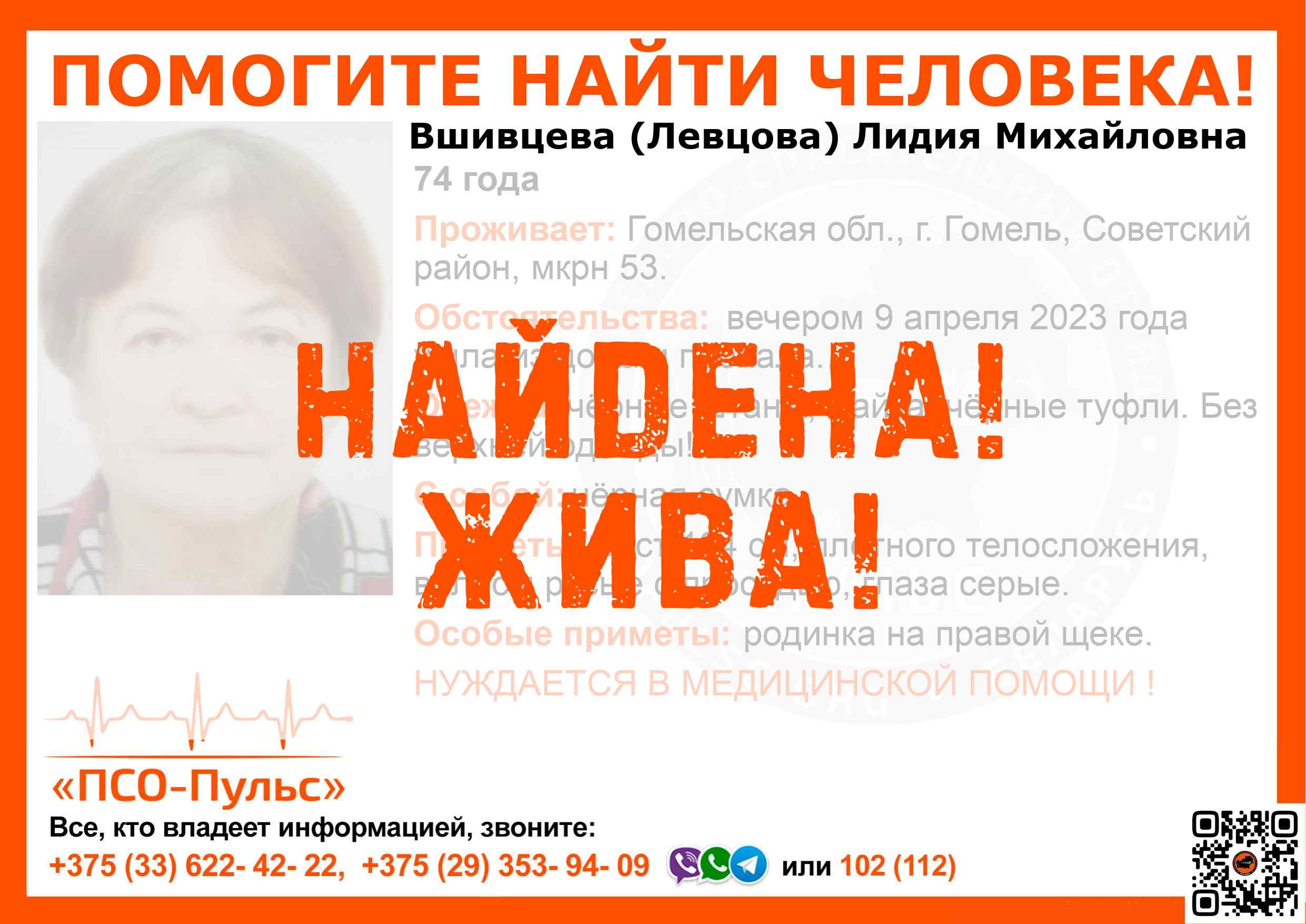 Всех, кто владеет информацией, просим сообщить: ПСО "ПСО-Пульс" +375(33)622-4222 |