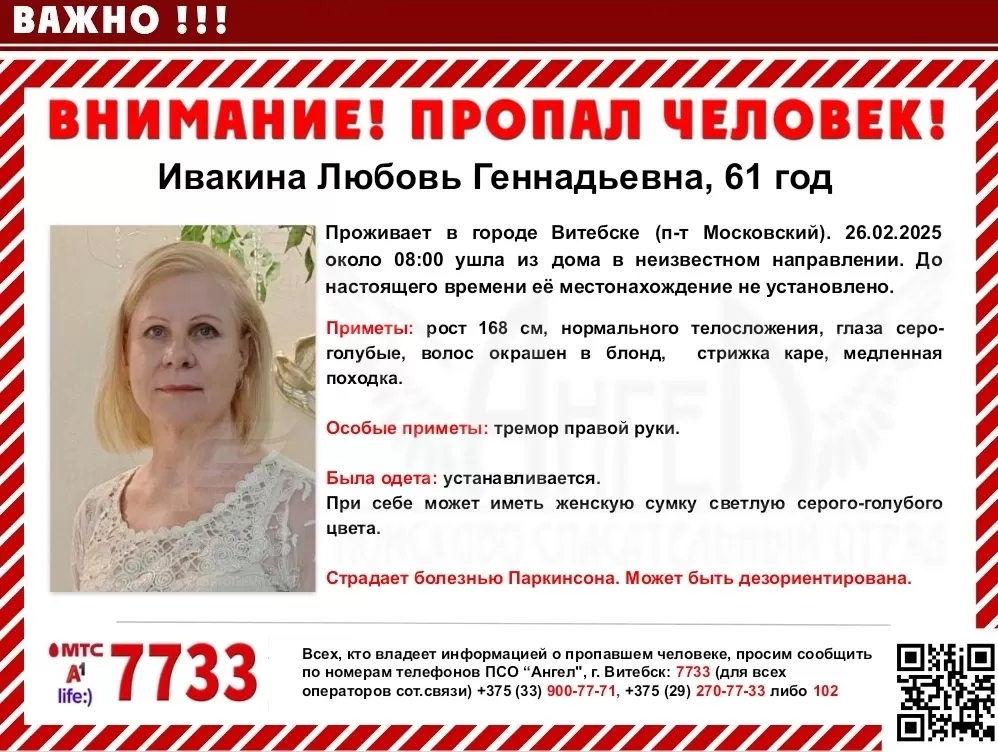 Скачать ориентировкуДля оперативного получения информации о пропавших людях и сборах на поиски можно подписаться на бота оповещения: Телеграм