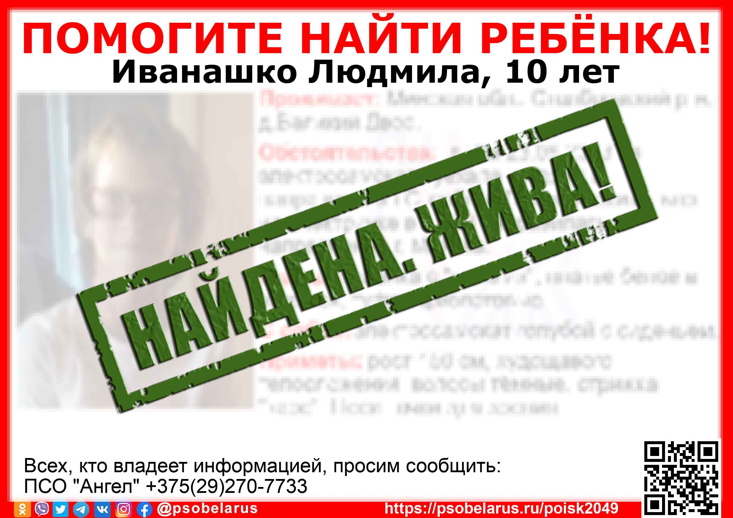 Всех, кто владеет информацией, просим сообщить: ПСО "Ангел" +375(29)270-7733 |