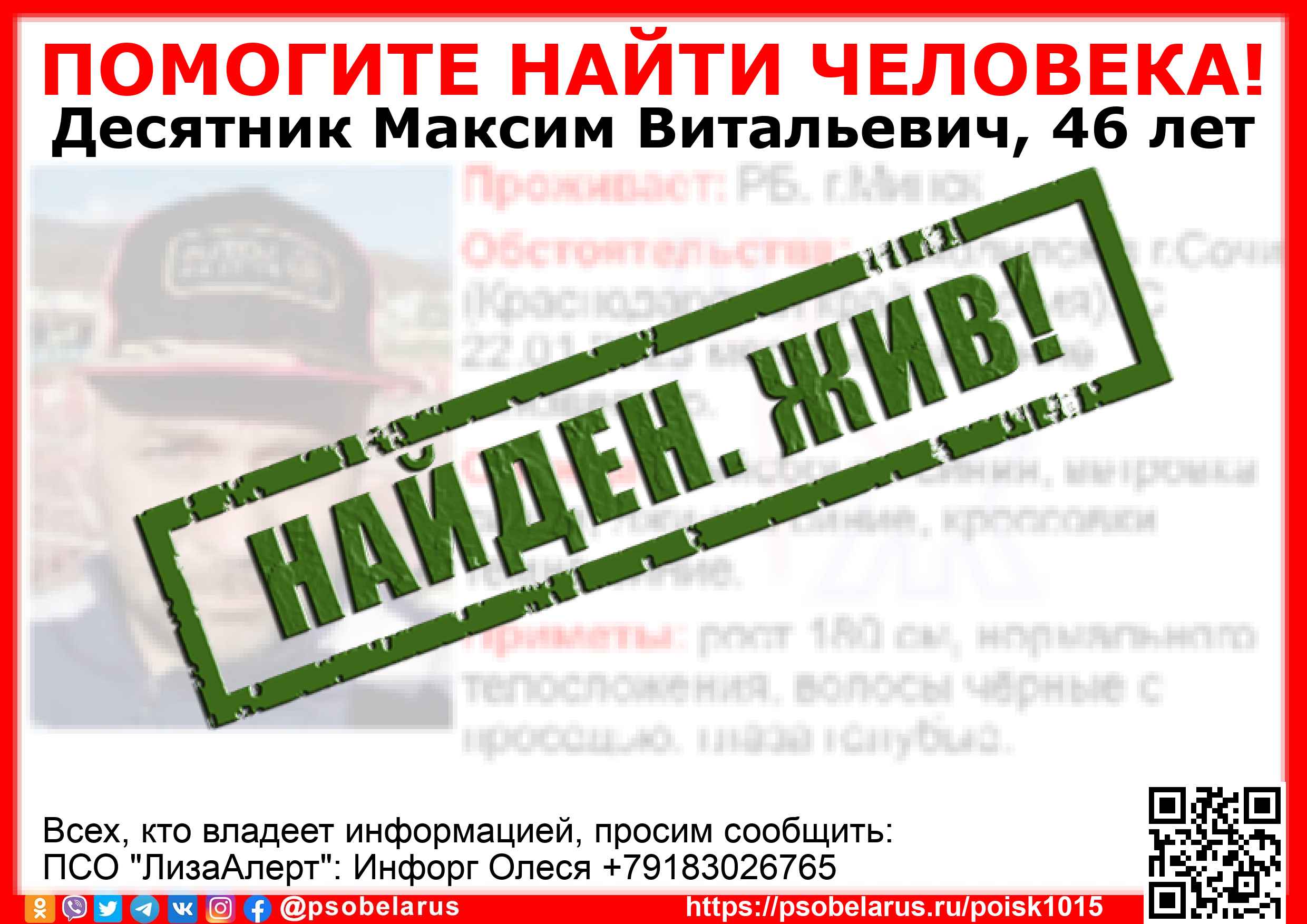 Всех, кто владеет информацией, просим сообщить: ПСО "ЛизаАлерт": Инфорг Олеся +79183026765  |