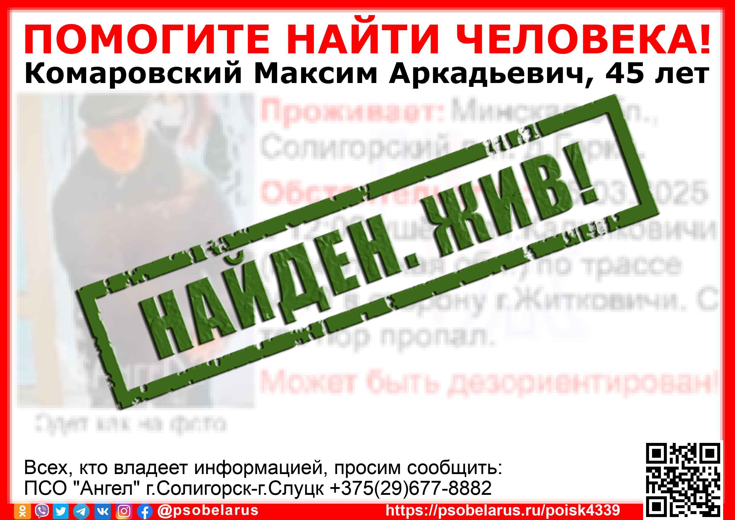 Всех, кто владеет информацией, просим сообщить: ПСО "Ангел" г.Солигорск-г.Слуцк +375(29)677-8882 |