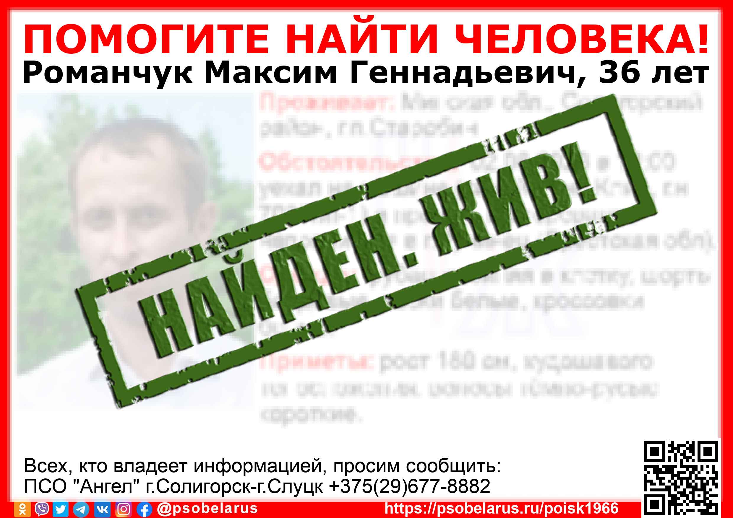 Всех, кто владеет информацией, просим сообщить: ПСО "Ангел" г.Солигорск-г.Слуцк +375(29)677-8882 |