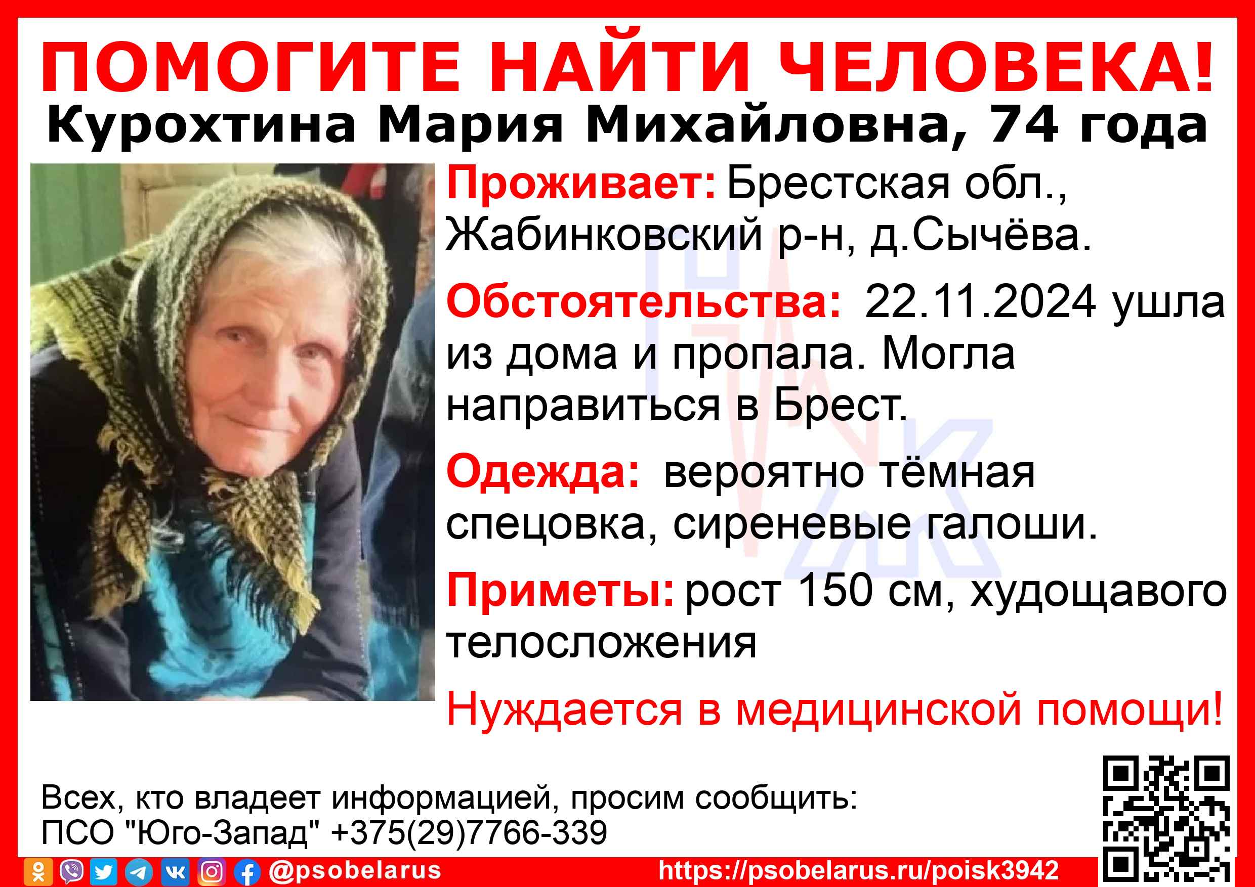 Скачать ориентировкуДля оперативного получения информации о пропавших людях и сборах на поиски можно подписаться на бота оповещения: Телеграм