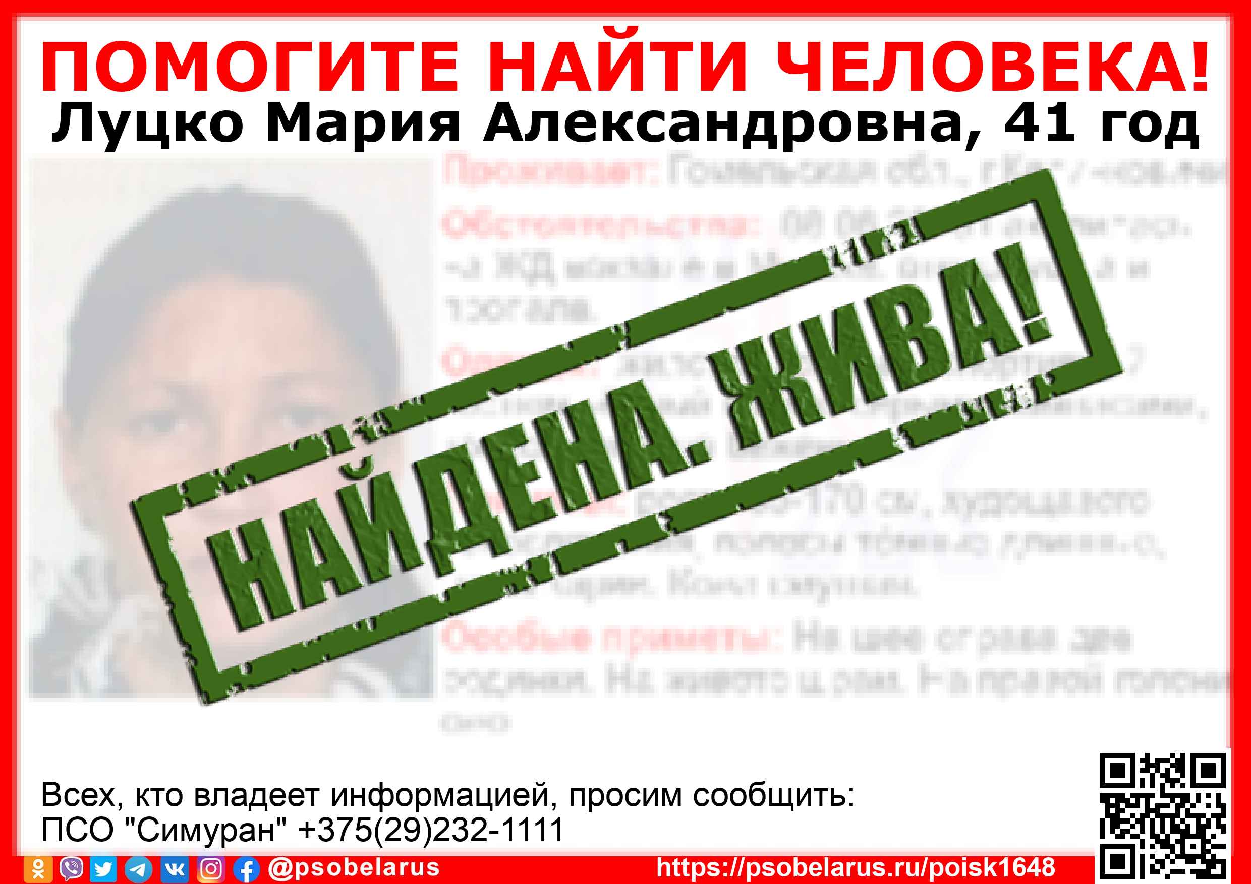 Всех, кто владеет информацией, просим сообщить: ПСО "Симуран" +375(29)232-1111 |