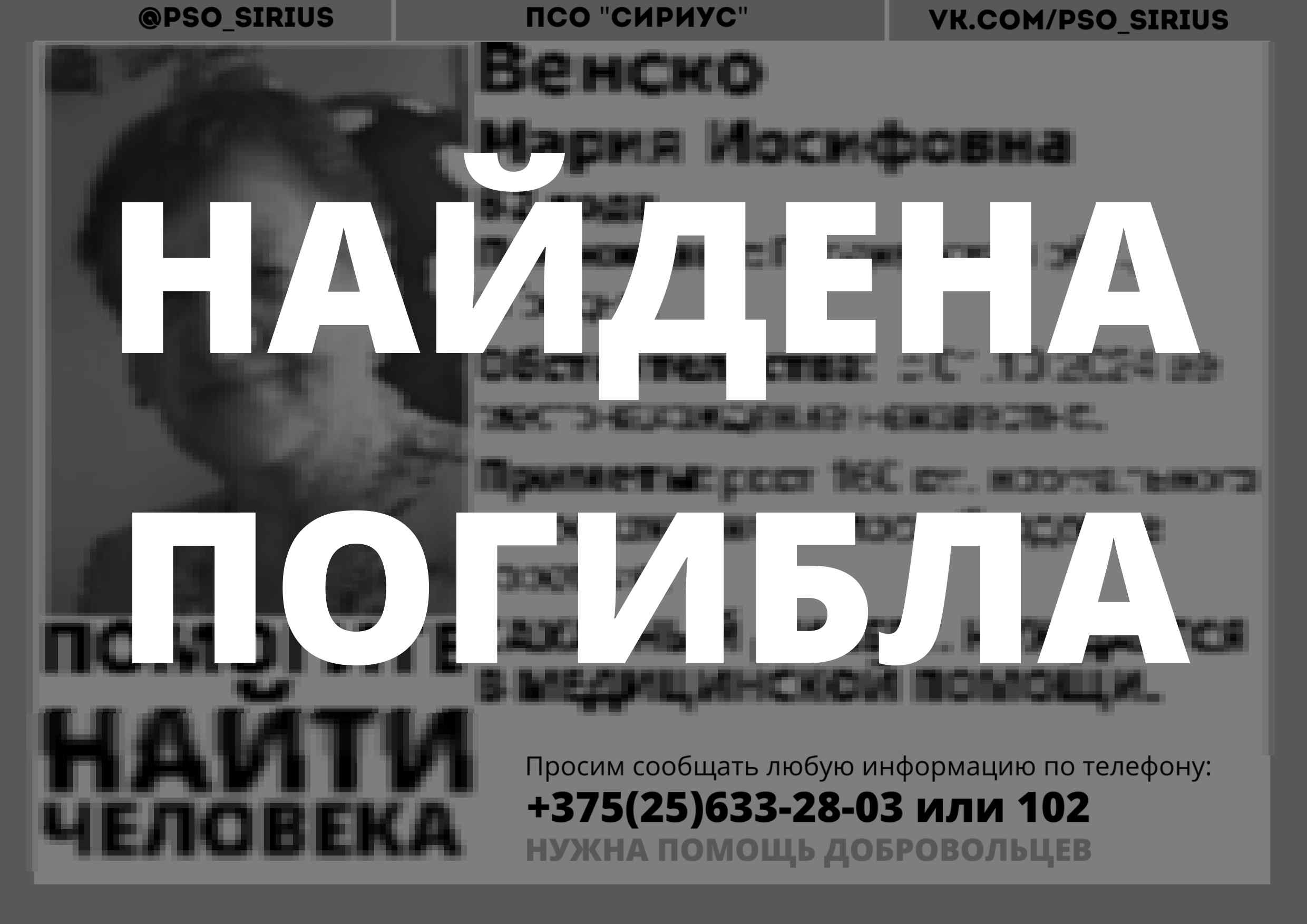 Всех, кто владеет информацией, просим сообщить: ПСО "Сириус" +375(25)633-28-03 |