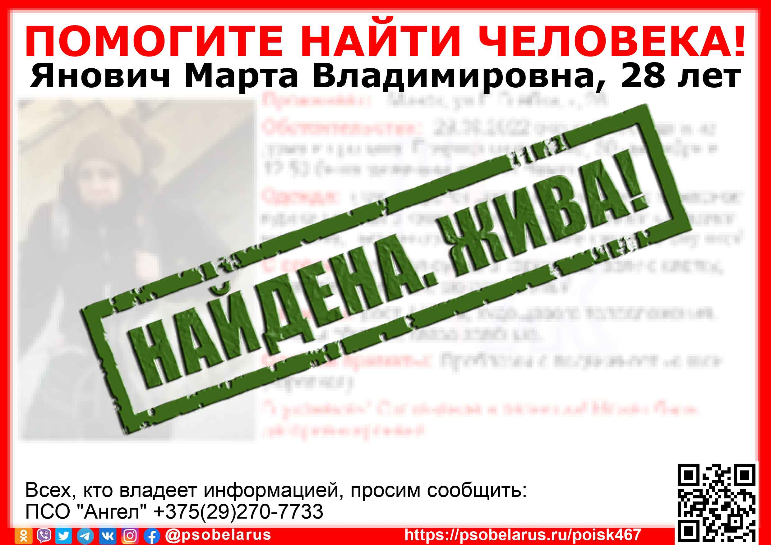 29.09.2022 около 14:30 ушла из дома и пропала. Предположительно, 30 сентября в 12:50 была замечена на ст.м.Немига.