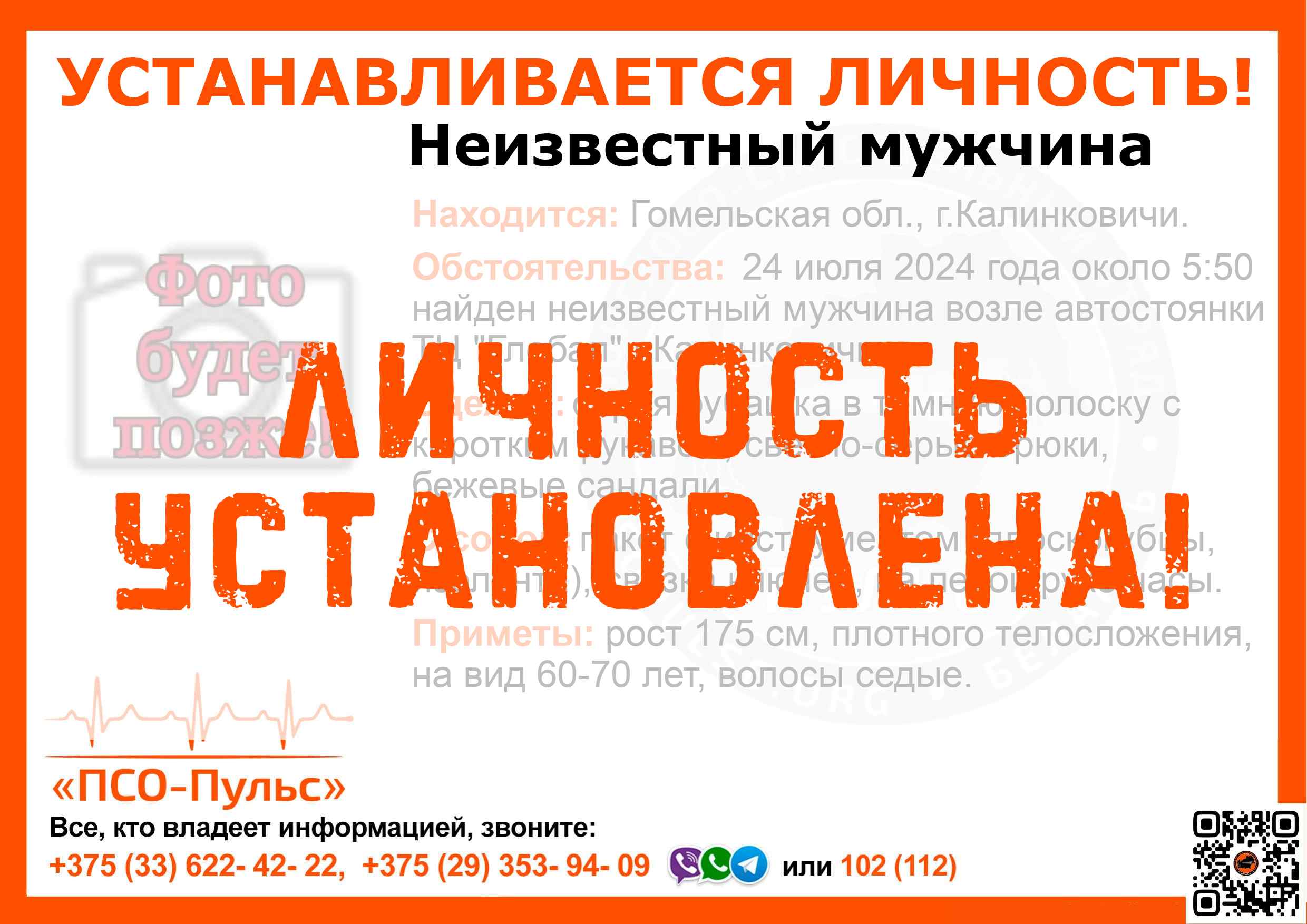 Всех, кто владеет информацией, просим сообщить: ПСО "ПСО-Пульс" +375(33)622-4222 |