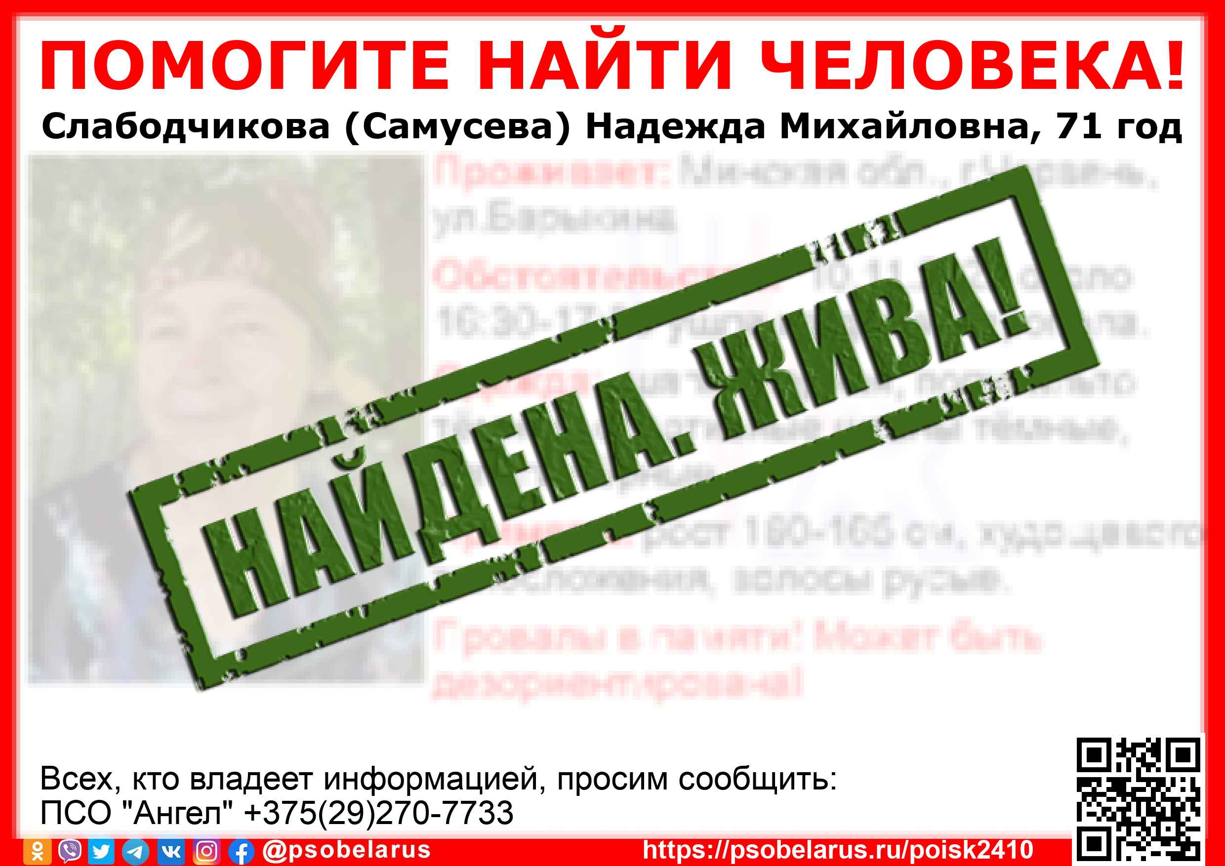 Скачать ориентировкуДля оперативного получения информации о пропавших людях и сборах на поиски можно подписаться на бота оповещения: Телеграм