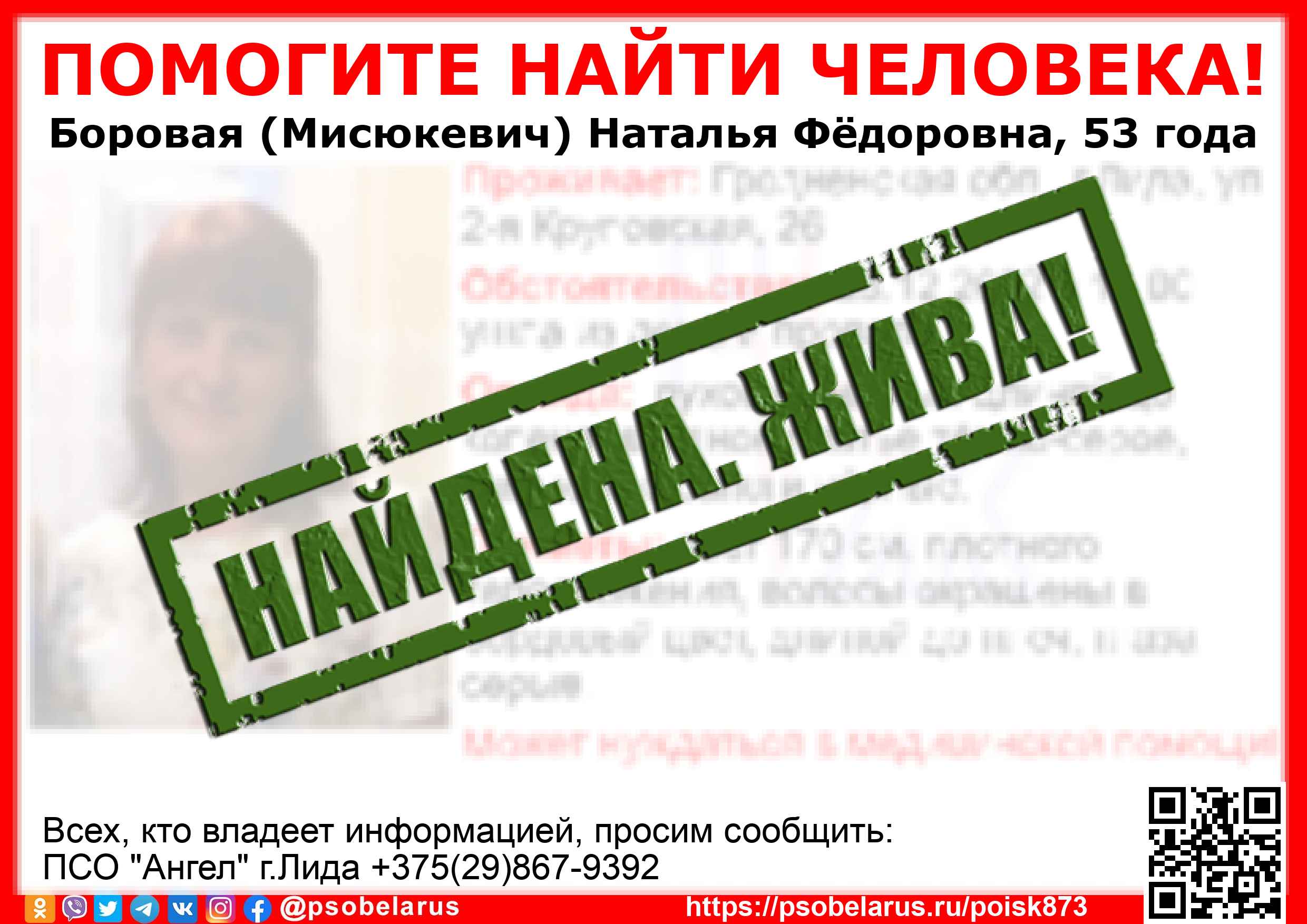 Всех, кто владеет информацией, просим сообщить: ПСО "Ангел" г.Лида +375(29)867-9392 |