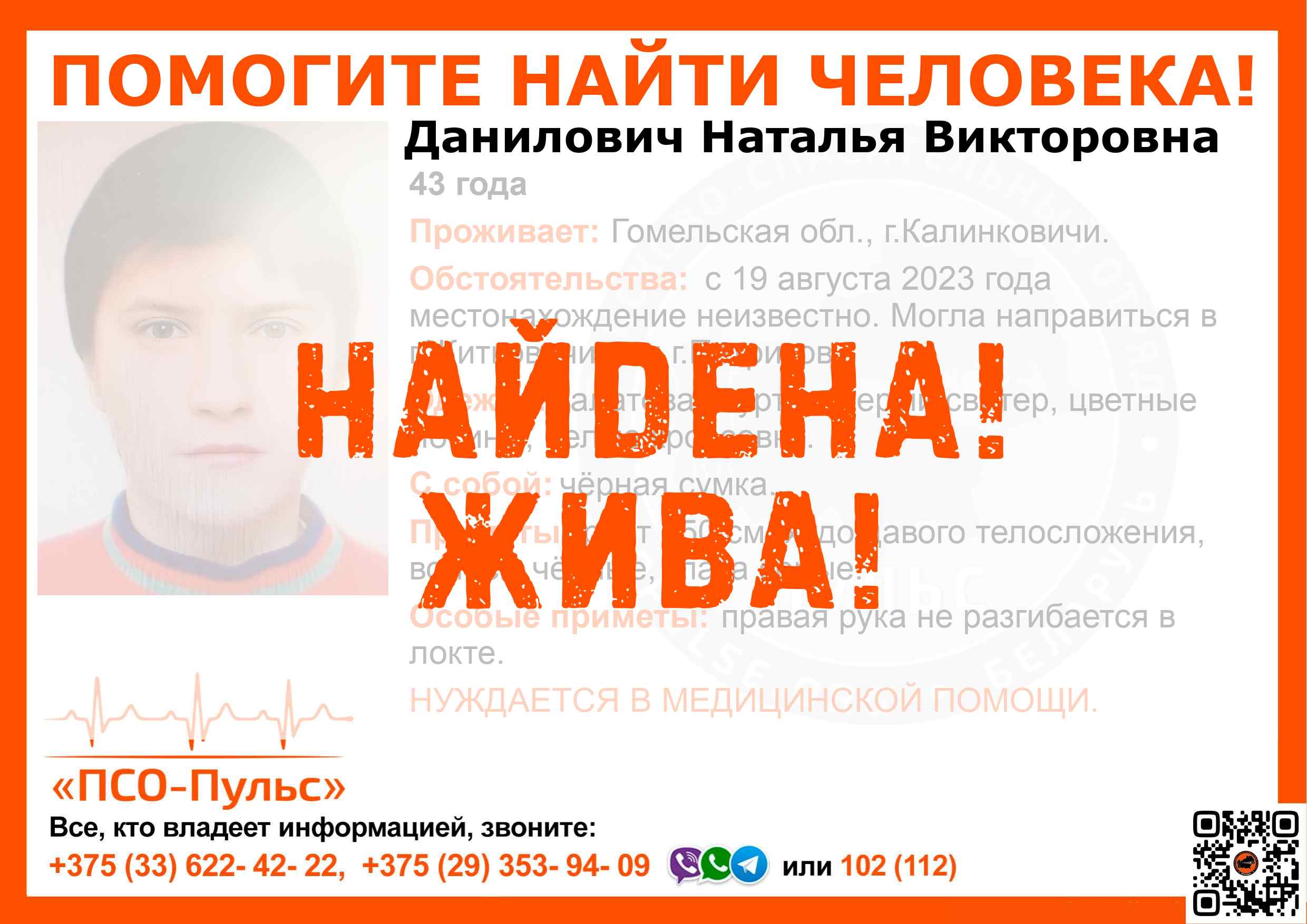 Всех, кто владеет информацией, просим сообщить: ПСО "ПСО-Пульс" +375(33)622-4222 |