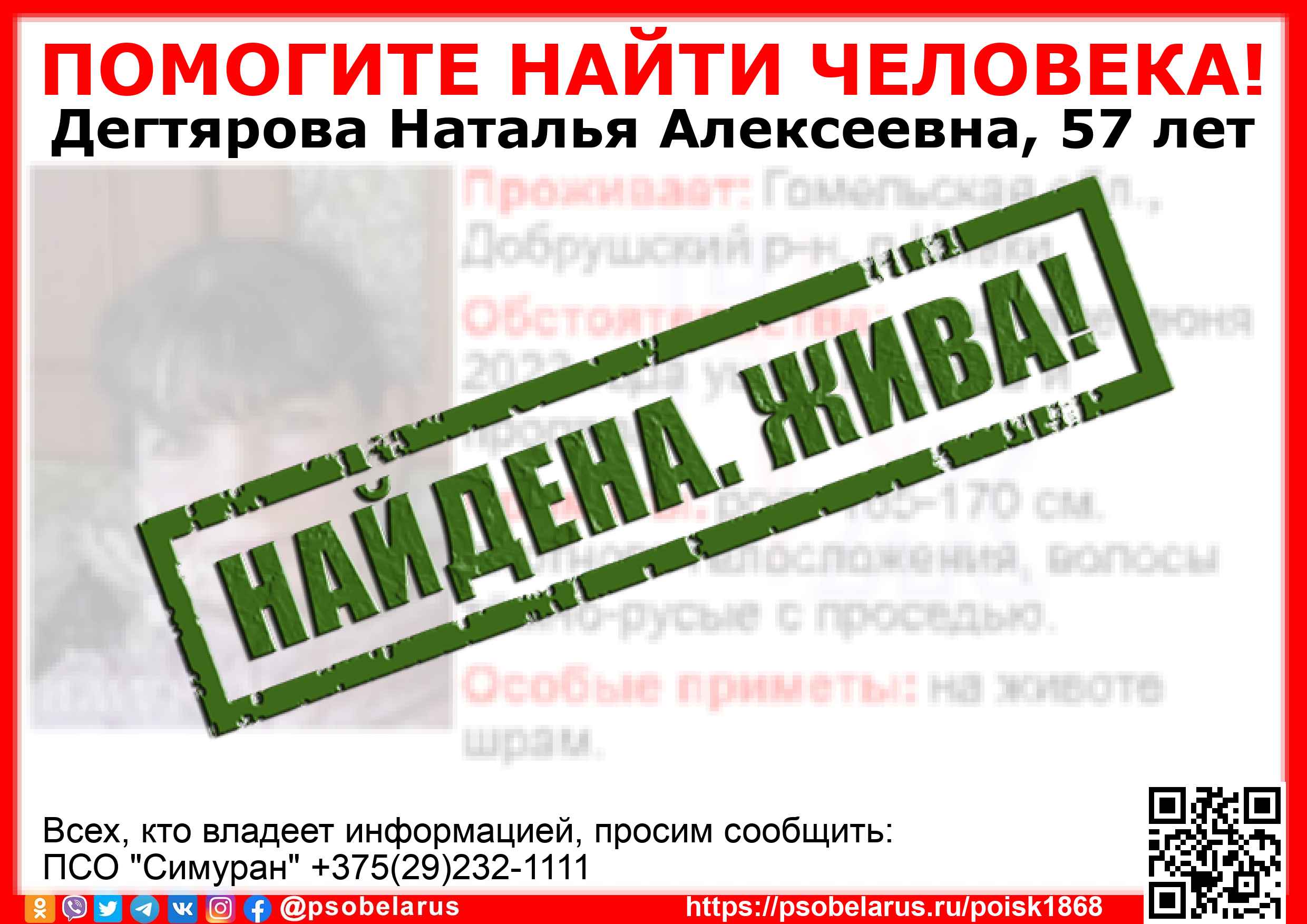 Скачать ориентировкуДля оперативного получения информации о пропавших людях и сборах на поиски можно подписаться на бота оповещения: Телеграм