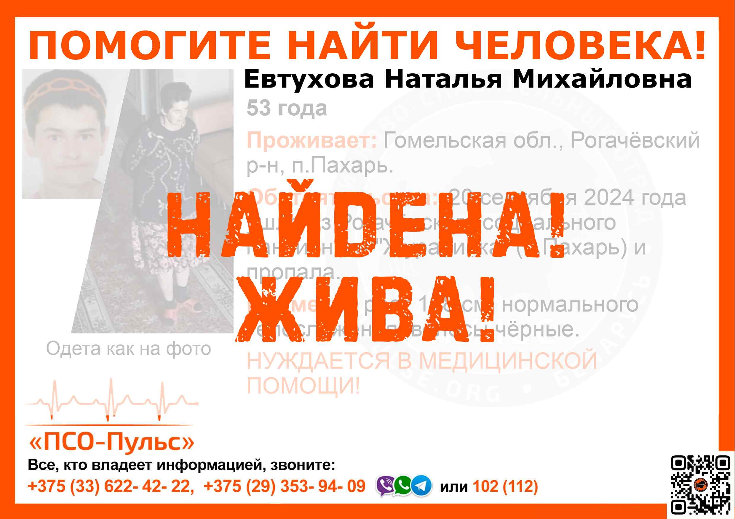 Скачать ориентировкуДля оперативного получения информации о пропавших людях и сборах на поиски можно подписаться на бота оповещения: Телеграм