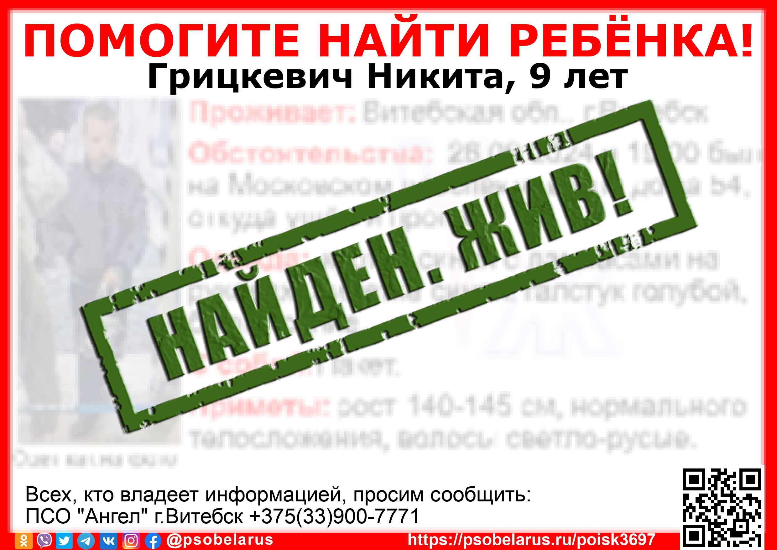 Всех, кто владеет информацией, просим сообщить: ПСО "Ангел" г.Витебск +375(33)900-7771 |