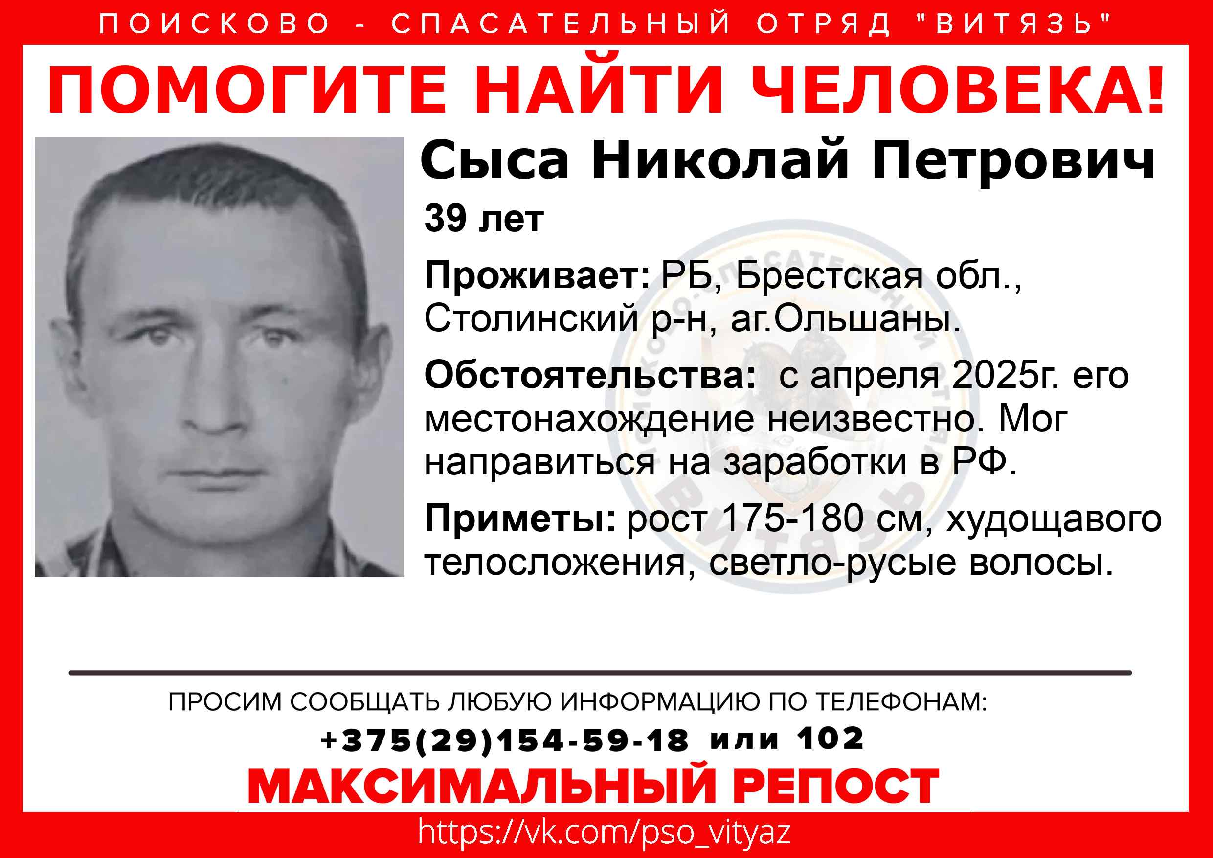 Всех, кто владеет информацией, просим сообщить: ПСО "ВИТЯЗЬ" +375(29)154-59-18 |