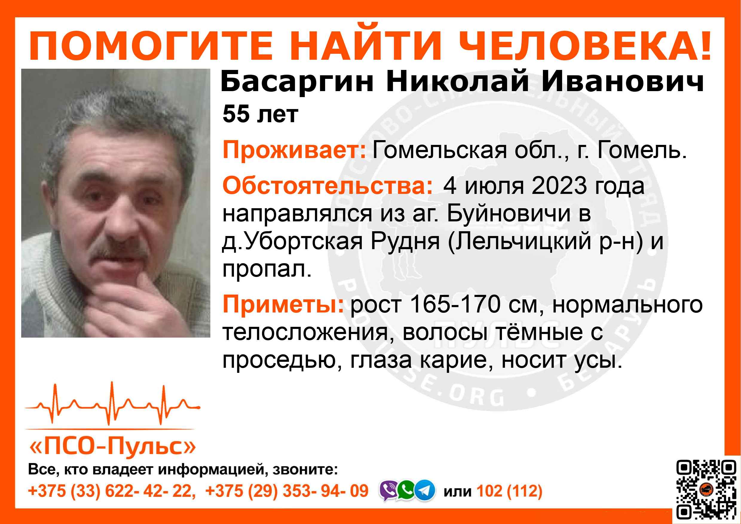 Всех, кто владеет информацией, просим сообщить: ПСО "ПСО-Пульс" +375(33)622-4222 |