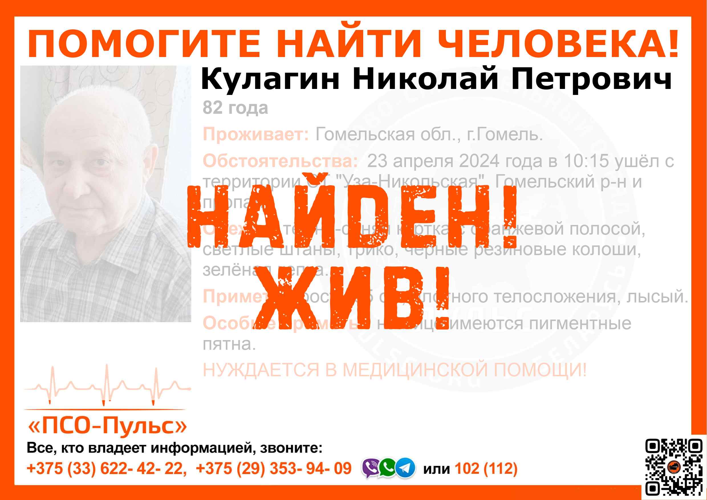Всех, кто владеет информацией, просим сообщить: ПСО "ПСО-Пульс" +375(33)622-4222 |