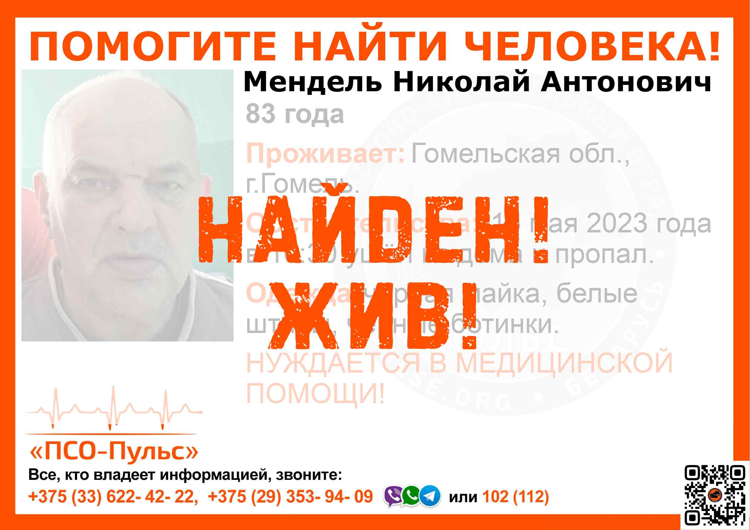 Всех, кто владеет информацией, просим сообщить: ПСО "ПСО-Пульс" +375(33)622-4222 |