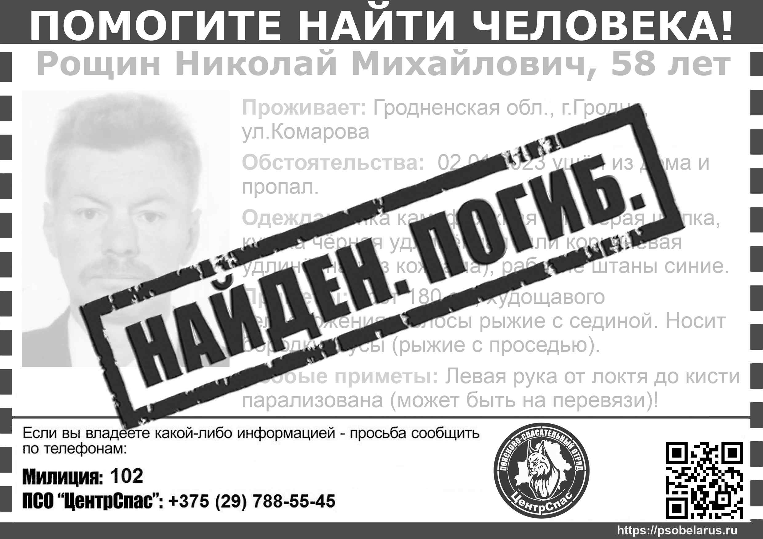 Всех, кто владеет информацией, просим сообщить: ПСО "ЦентрСпас" +375(29)788-5545 |