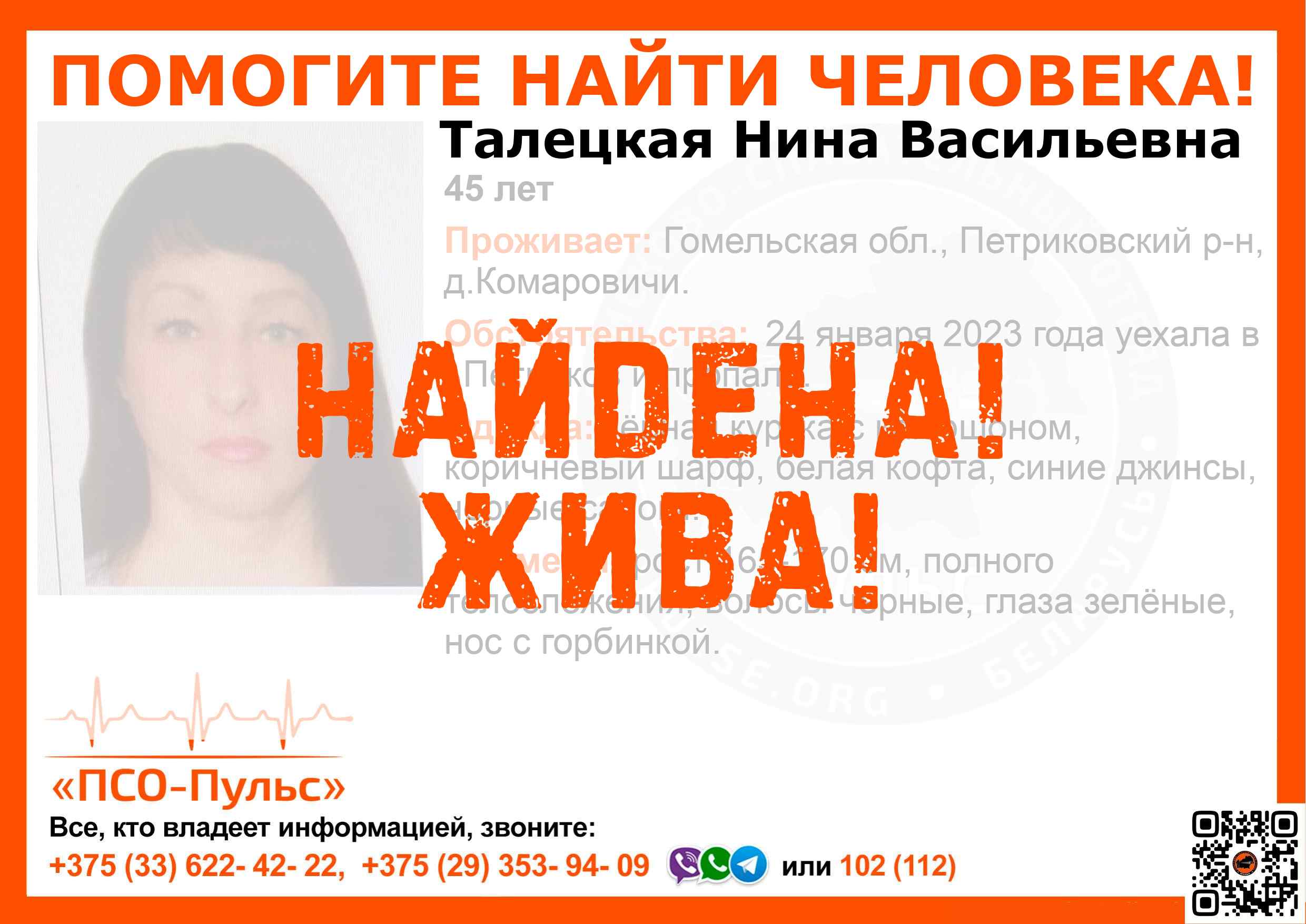 Всех, кто владеет информацией, просим сообщить: ПСО "ПСО-Пульс" +375(33)622-4222 |