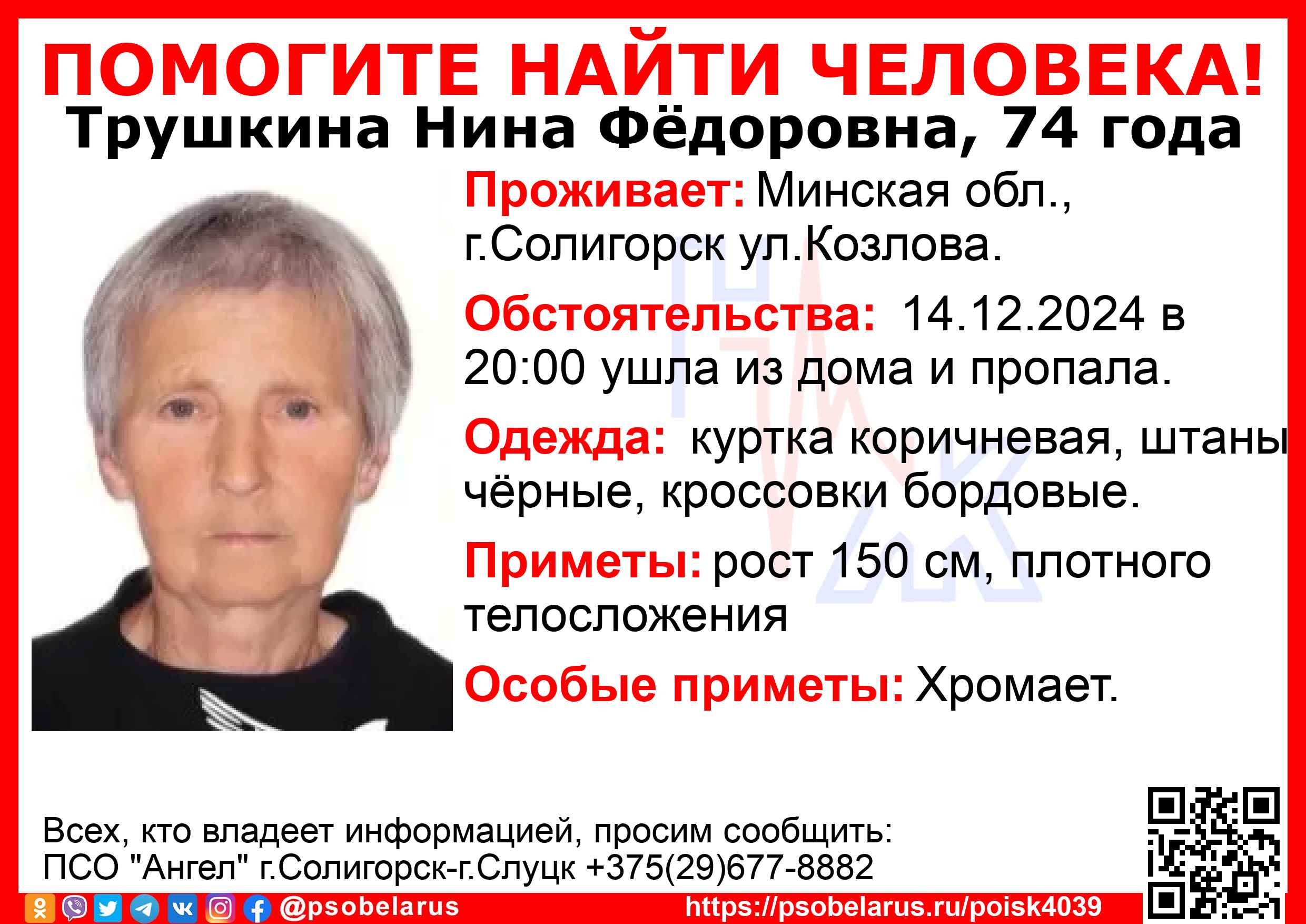 Скачать ориентировкуДля оперативного получения информации о пропавших людях и сборах на поиски можно подписаться на бота оповещения: Телеграм