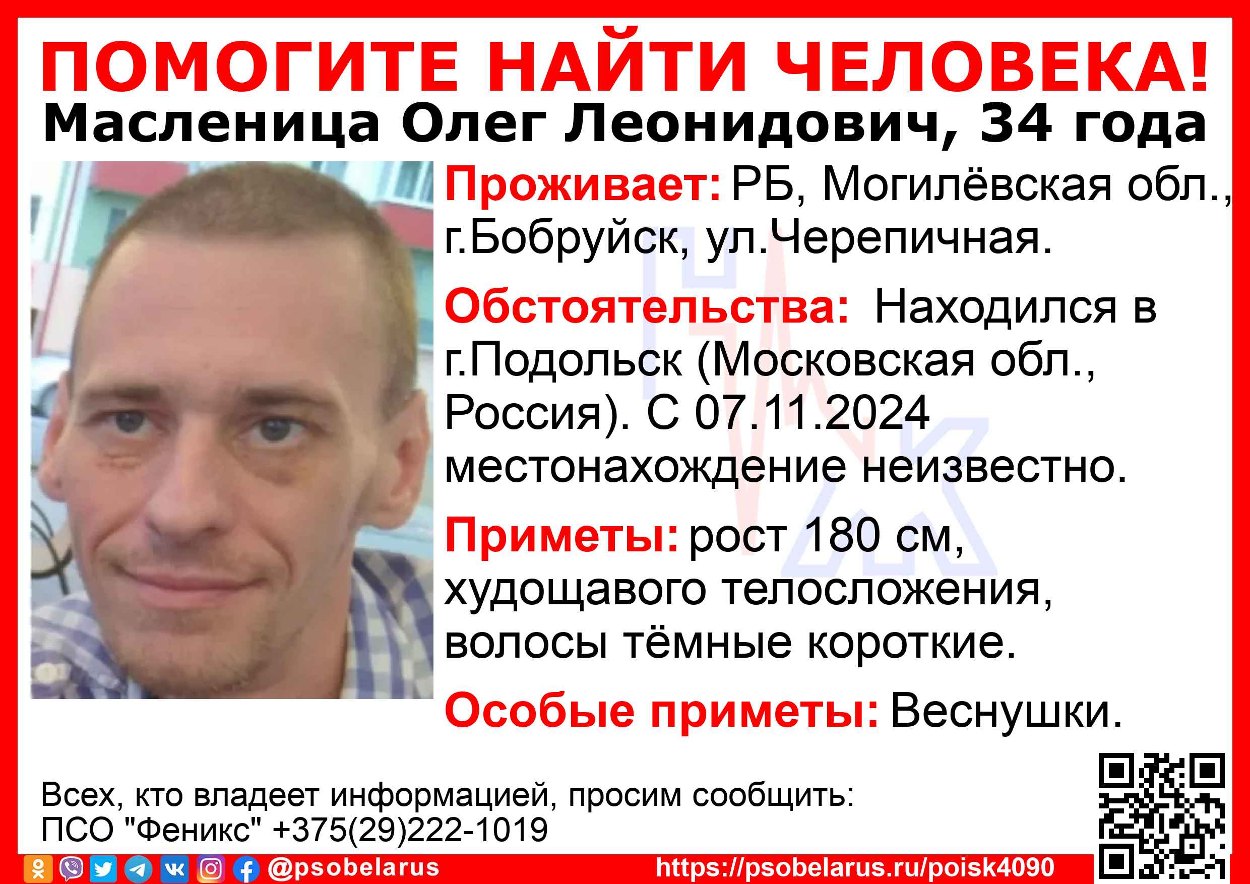 Всех, кто владеет информацией, просим сообщить: ПСО "Феникс" +375(29)222-1019 |