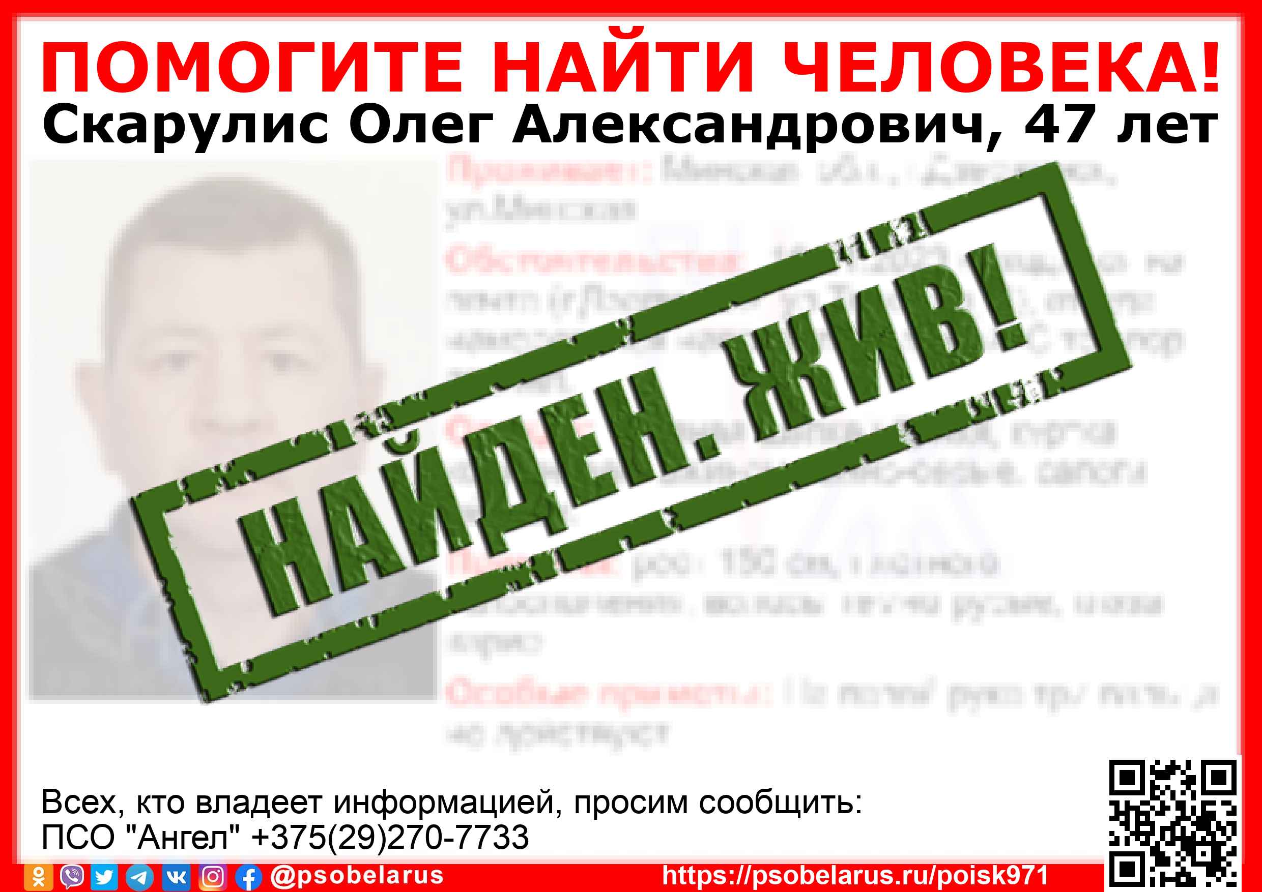 Всех, кто владеет информацией, просим сообщить: ПСО "Ангел" +375(29)270-7733  |