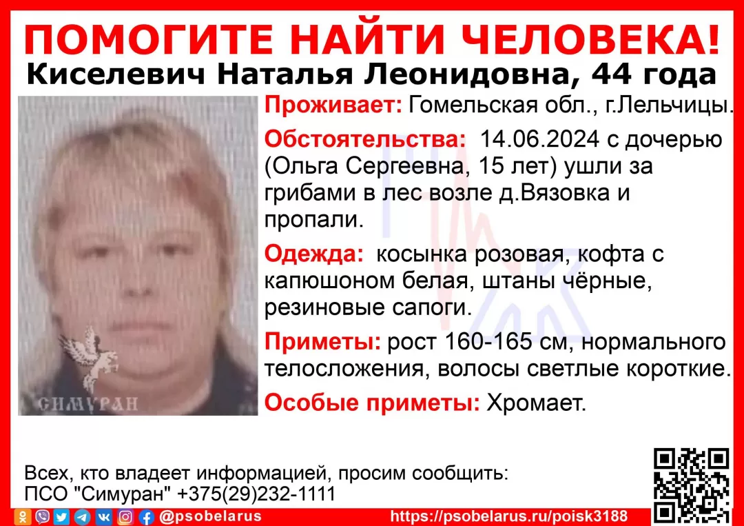 Всех, кто владеет информацией, просим сообщить: ПСО "Симуран" +375(29)232-1111 |