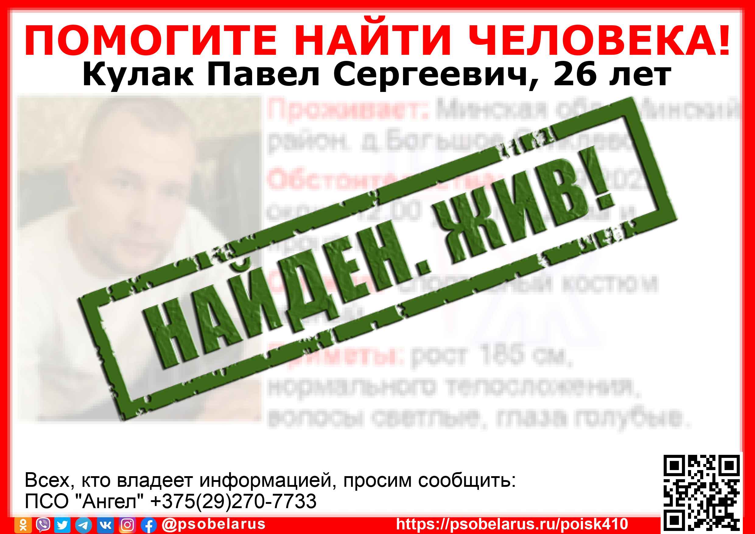 | Всех, кто владеет информацией, просим сообщить: ПСО "Ангел" +375(29)270-7733 |  |