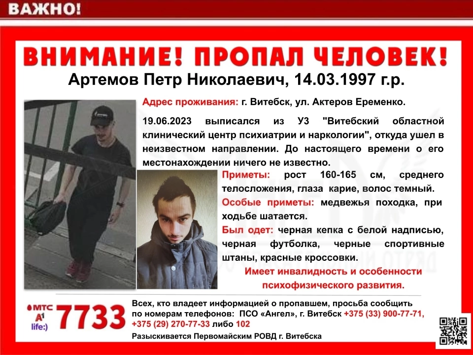 Всех, кто владеет информацией, просим сообщить: ПСО "Ангел" г.Витебск +375(33)900-7771 |