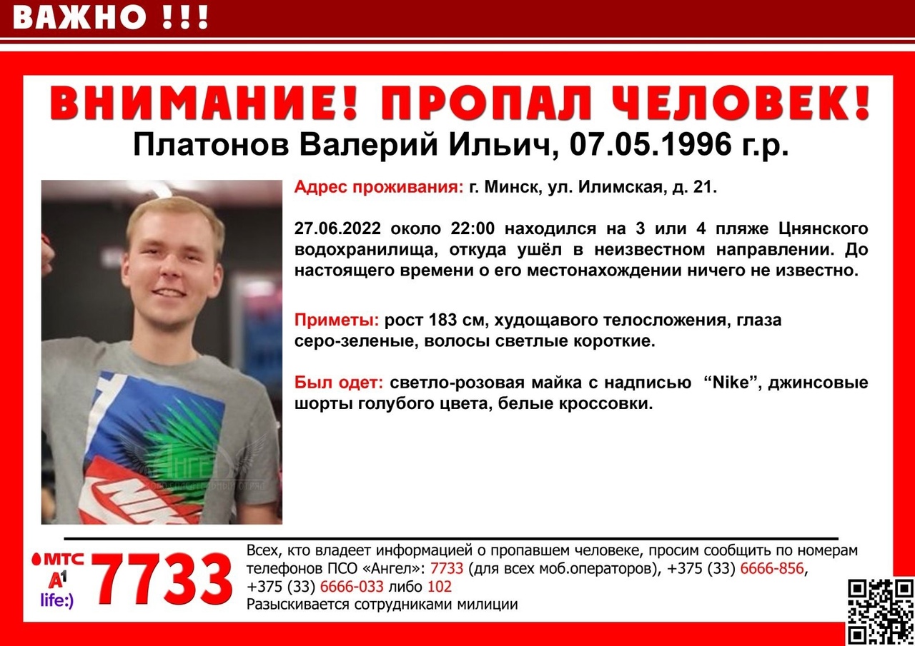 Всех, кто владеет информацией, просим сообщить: ПСО "Ангел" +375(29)270-7733 |