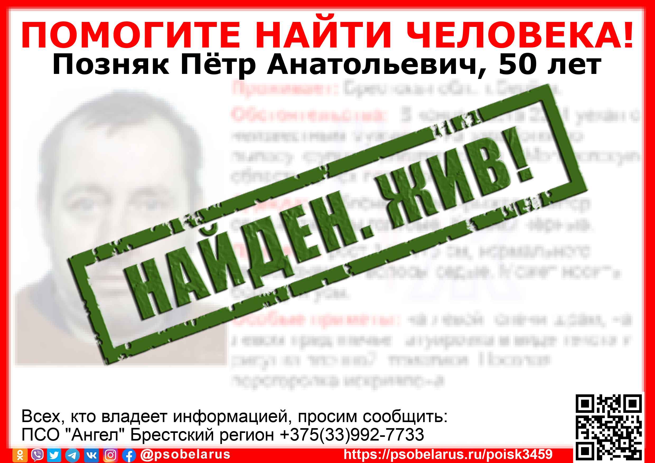 Всех, кто владеет информацией, просим сообщить: ПСО "Ангел" Брестский регион +375(33)992-7733  |
