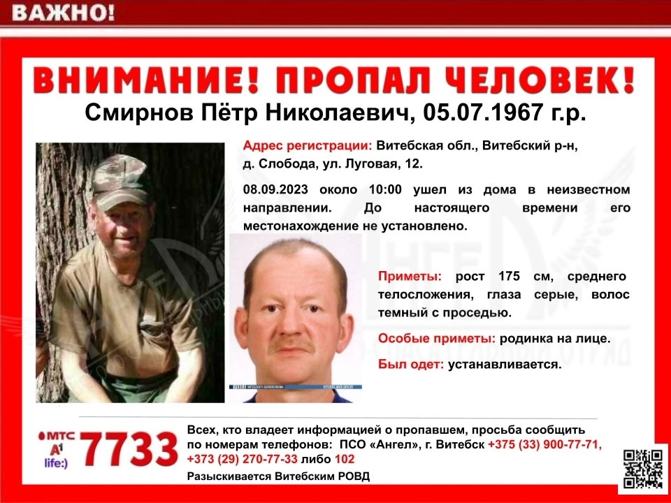 Всех, кто владеет информацией, просим сообщить: ПСО "Ангел" г.Витебск +375(33)900-7771 |