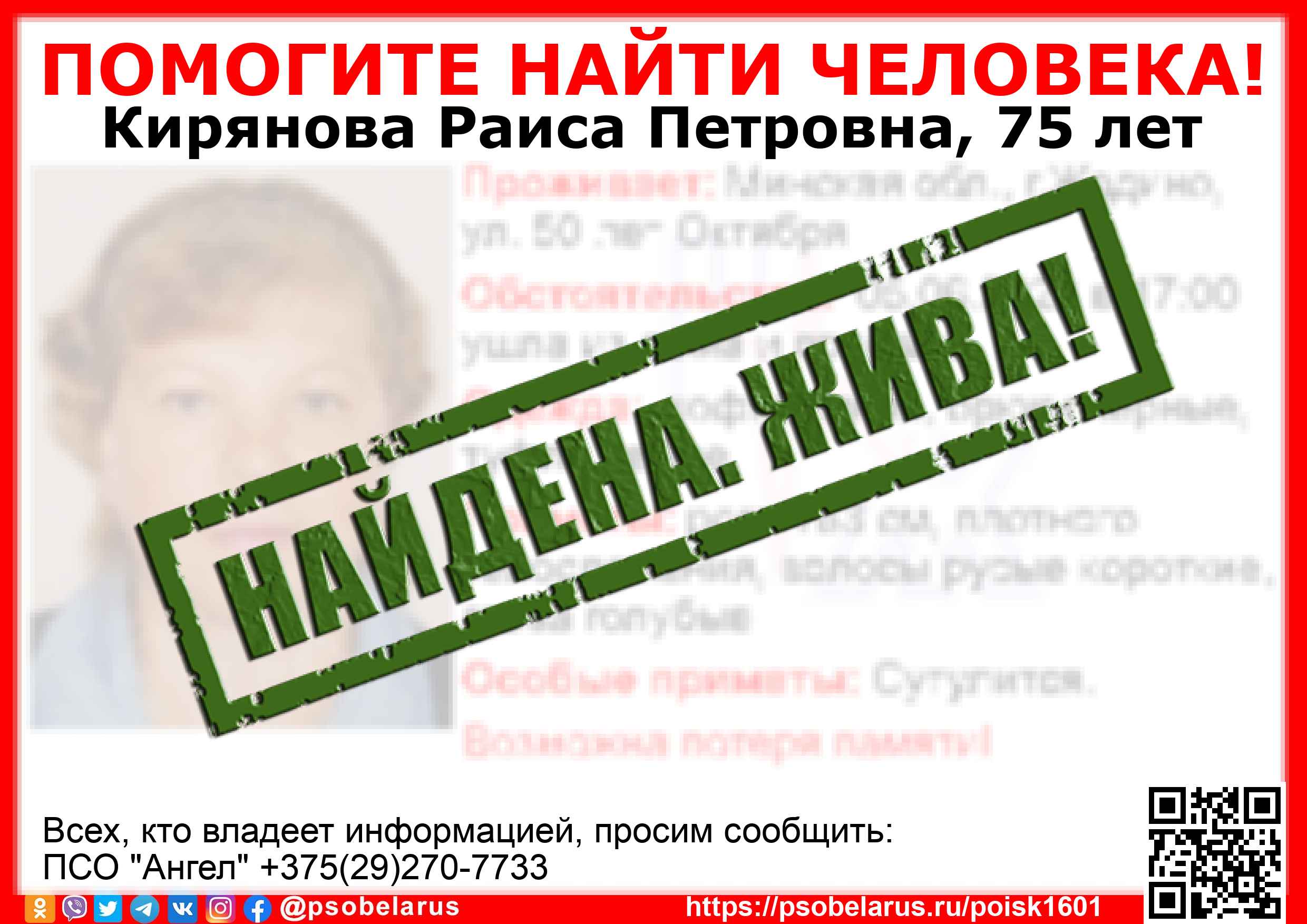 Скачать ориентировкуДля оперативного получения информации о пропавших людях и сборах на поиски можно подписаться на бота оповещения: Телеграм