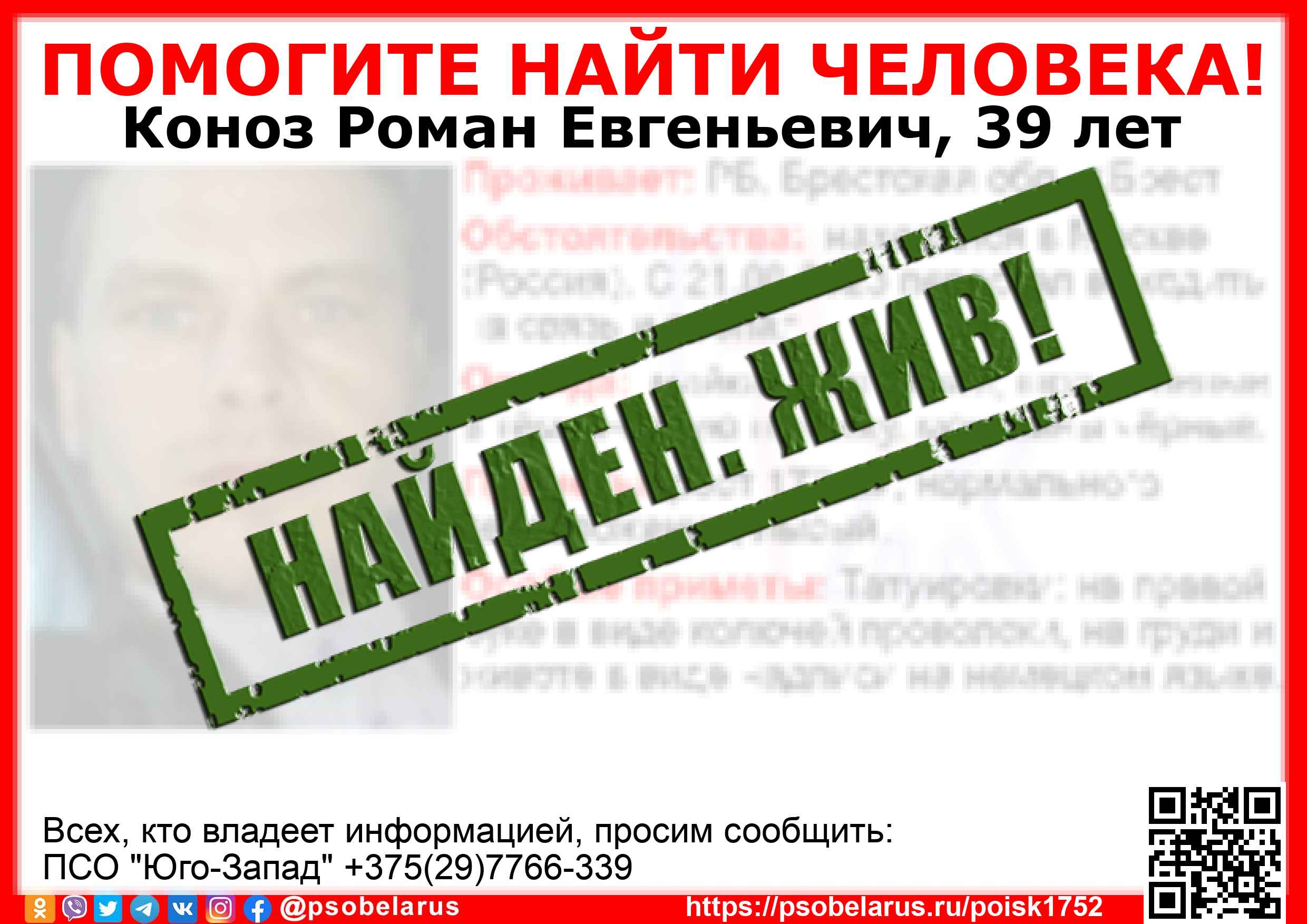 Всех, кто владеет информацией, просим сообщить: ПСО "Юго-Запад" +375(29)7766-339 |